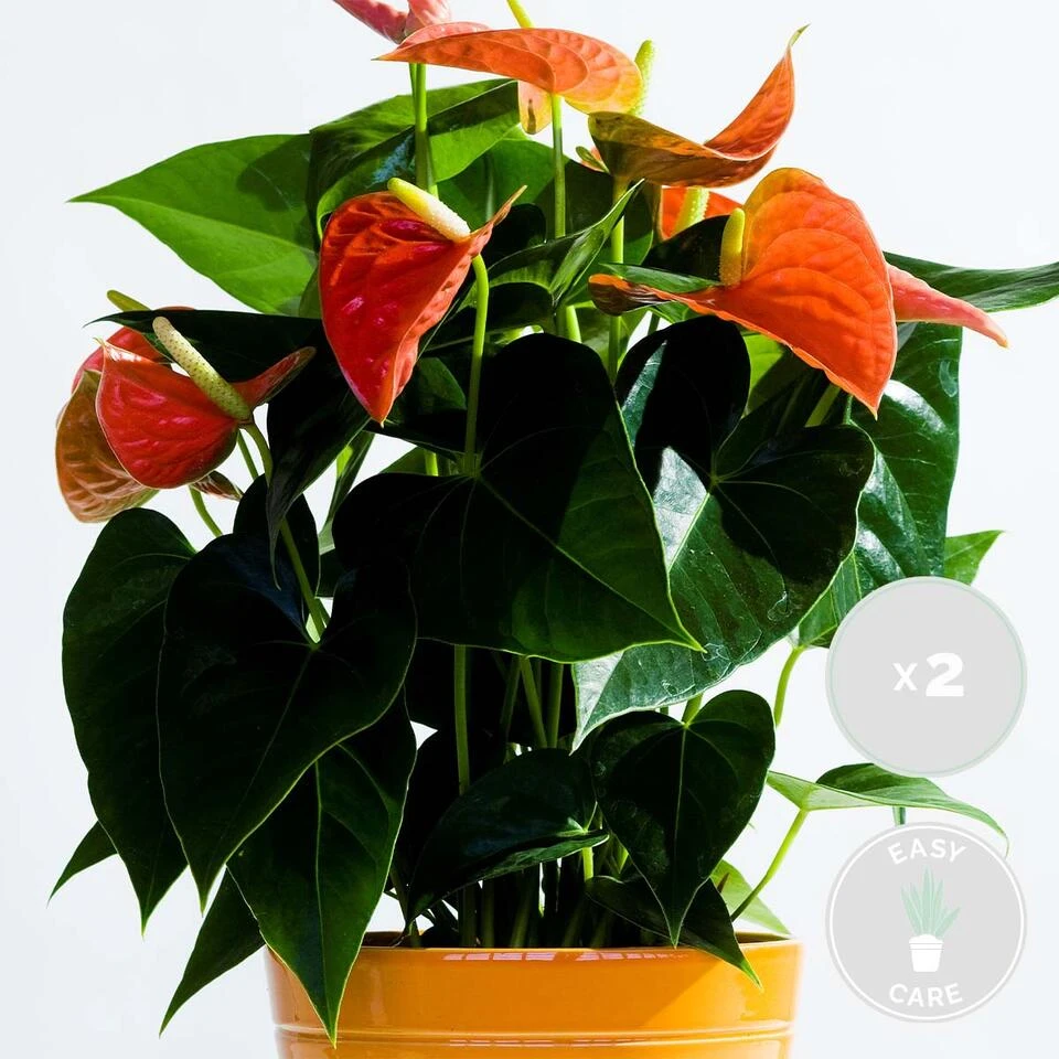 De Anthurium andreanum ‘Aristo’ heeft haar roots liggen in het verre Zuid-Amerika. Deze flamingoplant is zoβn succes door haar sterke karakter en bloei. Niet alleen is zij onderhoudsvriendelijk, ook laat zij haar altijd van haar beste kant zien. De anthurium is namelijk een van de langste non-stop bloeiende potplanten ter wereld. Het hele jaar door kan je genieten van haar oranje hartvormige bloemen. Kortom, de flamingoplant heeft onze harten wel veroverd! Is wit niet jouw kleur? Geen probleem, de anthurium is ook gewoon verkrijgbaar in het rood, roze of zelfs wit.