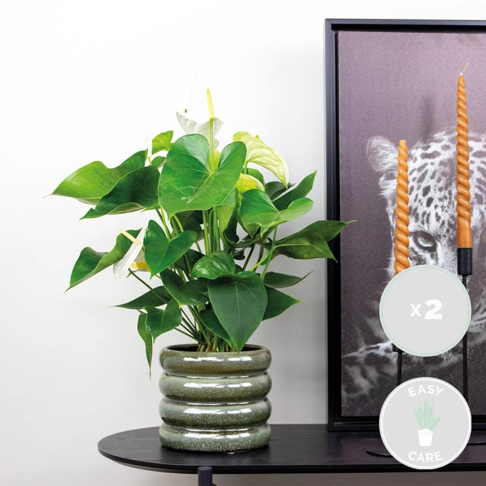 De Anthurium andreanum ‘Aristo’ heeft haar roots liggen in het verre Zuid-Amerika. Deze flamingoplant is zoβn succes door haar sterke karakter en bloei. Niet alleen is zij onderhoudsvriendelijk, ook laat zij haar altijd van haar beste kant zien. De anthurium is namelijk een van de langste non-stop bloeiende potplanten ter wereld. Het hele jaar door kan je genieten van haar hagelwitte hartvormige bloemen. Kortom, de flamingoplant heeft onze harten wel veroverd! Is wit niet jouw kleur? Geen probleem, de anthurium is ook gewoon verkrijgbaar in het rood, roze of zelfs oranje.