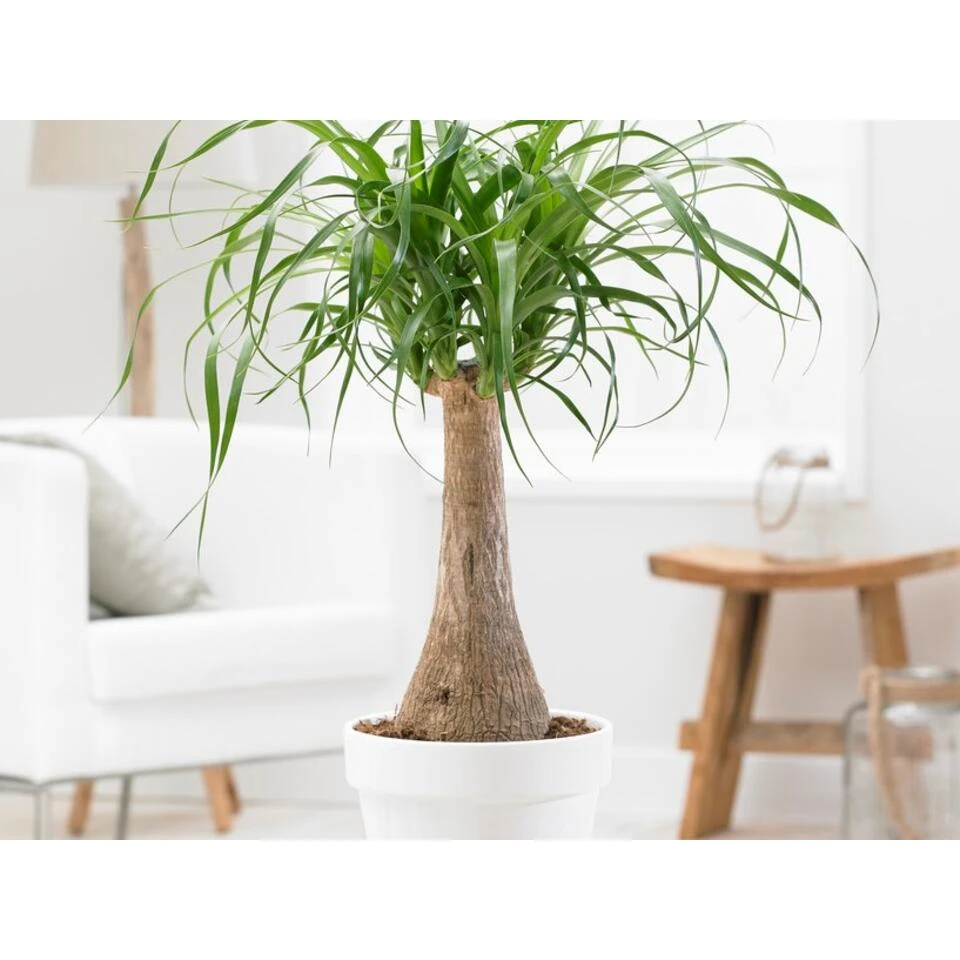 De Beaucarnea recurvata ken je misschien beter onder de naam Olifantspoot. Het is een stoere binnenboom met een flesvormige stam en een wilde bos gekrulde, lange bladeren. In tegenstelling tot olifanten komt de Beaucarnea niet uit Afrika of AziΓ«, maar uit Amerika. In het wild zijn deze planten te vinden vanaf CaliforniΓ« tot in Guatemala. Deze exotische plant is populair vanwege het ruwe uiterlijk. Het is een stoere toevoeging voor je interieur. Na een poosje kunnen de bladeren gaan vertakken waardoor je uiteindelijk een flink boom in huis hebt. Daar komt nog bij dat deze plant zeer eenvoudig te verzorgen is.