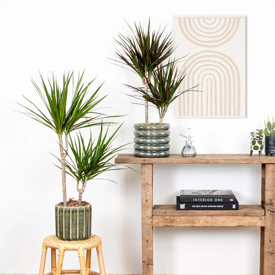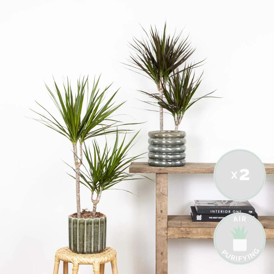 Planten verzorgen is nog nooit zo makkelijk geweest! Met de Dracaena Kamerplanten Mix haal je de twee toppers Marginata en Magenta in huis. Deze planten staan ook wel bekend als luchtzuiverende groene toppers. Naast dat zij een luchtzuiverende werking hebben, zijn zij ook nog eens erg gemakkelijk in hun onderhoud. Ze staan liever niet in de directe zon, maar verder zijn zij niet super kritisch. Met deze mix haal je dus de allerleukste groene kanjers in huis Γ©n hoef jij je geen zorgen te maken over die niet zo groene vingers. Β