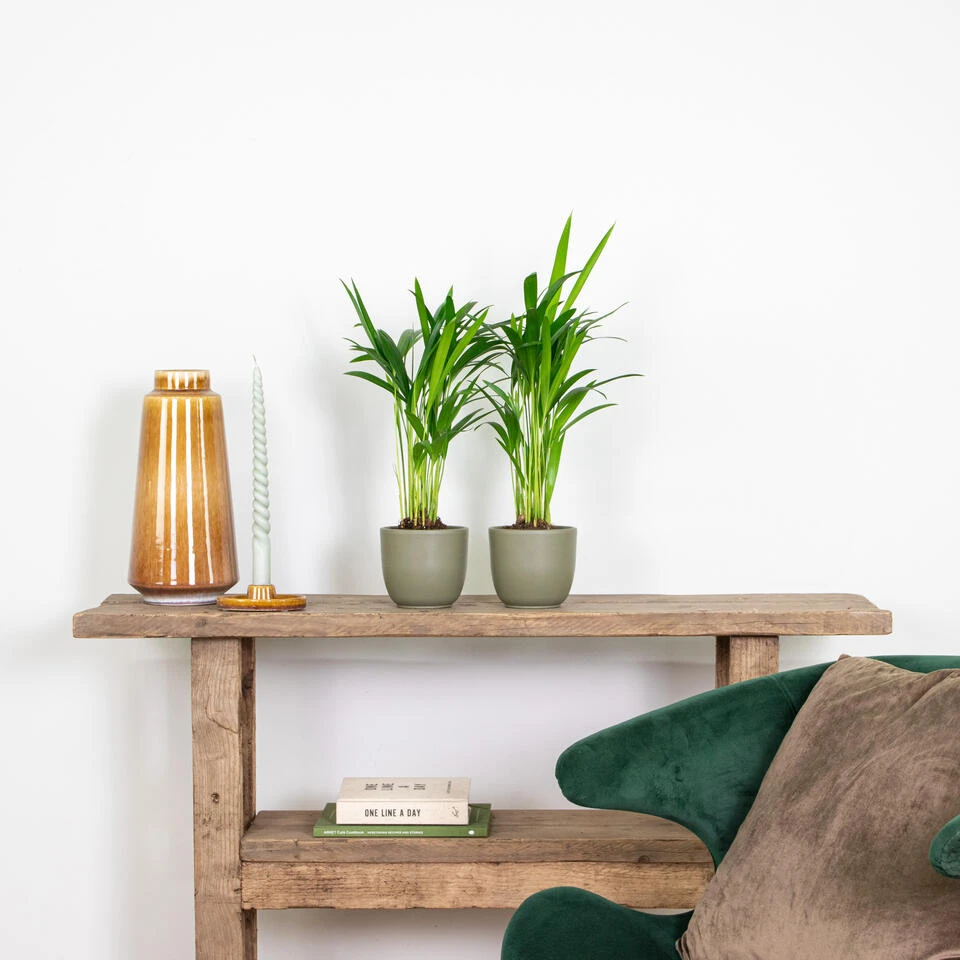 Haal de tropen naar jouw huiskamer met de Dypsis Lutescens! Laat het zonnetje maar schijnen en waan je in de tropen met deze onderhoudsvriendelijke goudpalm. De Dypsis is geknipt om in jouw woonkamer te vertoeven en door zijn gemakkelijke karakter waan jij je zo in de tropen. Naast dat deze palm er fantastisch uitziet, zuivert deze plant ook nog eens de lucht β een echte winnaar om te hebben. Niet voor niets is de Dypsis Lutescens ook wel bekend onder de koning van de tropen. Haal deze goudpalm snel in huis en geniet meteen van het ultieme vakantiegevoel.