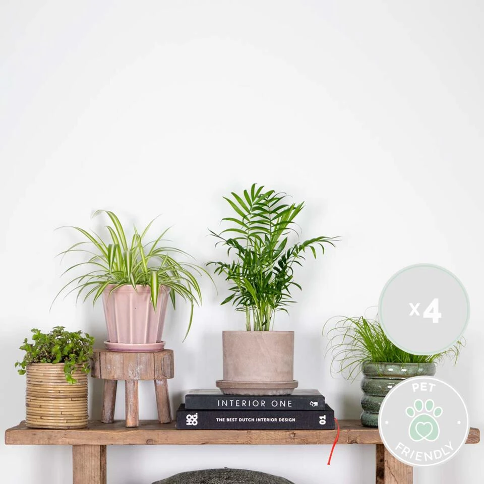 Deze huisdiervriendelijke kamerplanten mix bestaat uit 4 niet-giftige planten welke veilig zijn voor je huisdieren. Mocht je trouwe viervoeter de planten dus toch niet kunnen weerstaan, geen paniek! Ze zijn allemaal veilig om aan te knagen. Daarnaast zorgen de plantjes ook nog eens voor gezelligheid binnenshuis en zijn ze ook nog eens praktisch! Ideaal toch?
