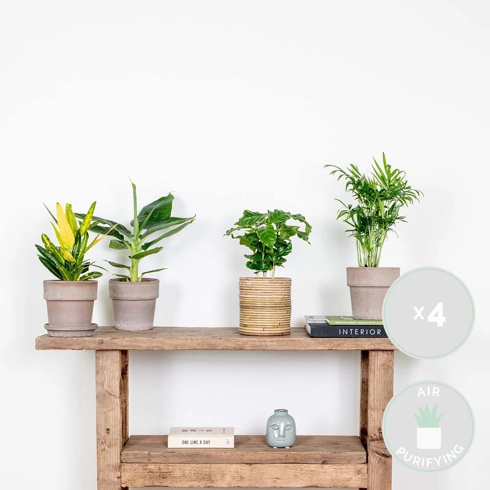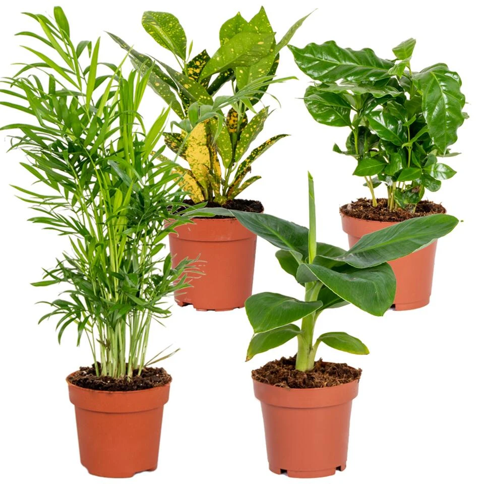 Waan je in de tropen met deze tropische kamerplanten mix! Deze mix bestaat uit vier tropische hunken Γ©n zijn ook nog eens gemakkelijk in de omgang. Naast dat ze gemakkelijk zijn, zuiveren zij ook nog eens de lucht en zorgen zij voor een gezonder binnenklimaat. Deze vier kamerplanten zijn stuk voor stuk uniek gevormd en zorgen in een mum van tijd dat jouw huis omgetoverd wordt tot een waar tropisch oord. Door hun onderhoudsvriendelijke karakter zijn zij ideaal voor diegene met lichtgroene vingers.