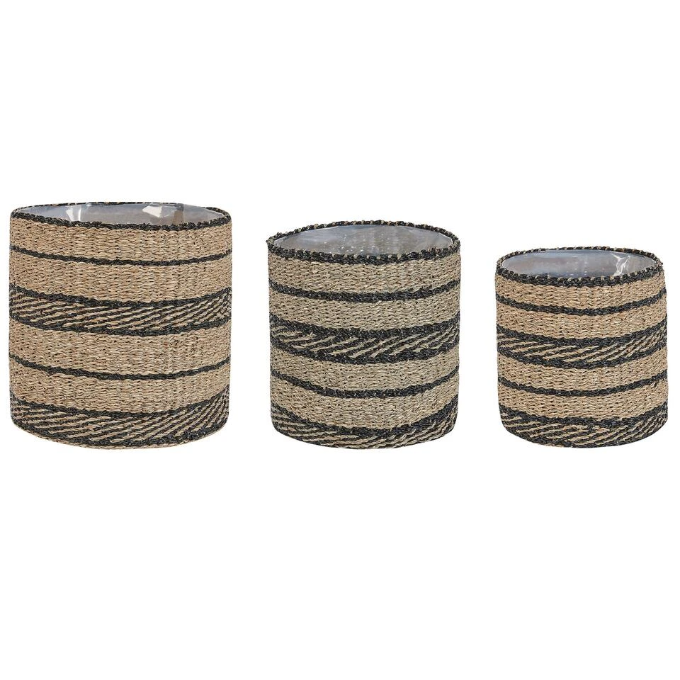 Natuurlijke plantenbakken. Deze set van 3 manden is een geweldige manier om je favoriete planten uit te stallen. Ze zijn gemaakt van zeegras en zorgen voor een natuurlijke aantrekkingskracht en passen mooi bij alle moderne, boho- of Scandinavische interieurstijlen. De plantenpotten zijn bekleed met een synthetisch materiaal zodat het water niet weglekt bij het water geven. Perfect als decoratief accent in een hal, woonkamer of serre.