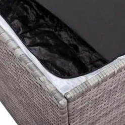 Praktische, brede opbergbox in taupe met veel opbergruimte. Deze kussenbox biedt veel opbergruimte en beschermt jouw kussens en dekens tegen water en zon. Dankzij de twee praktische handgrepen aan de zijkanten is de tuinkist gemakkelijk te vervoeren. Het rotandeksel kan gemakkelijk worden geopend en gesloten met twee gasveren. Een zwarte binnenschaal voorkomt het binnendringen van vuil en insecten. Het binnenste omhulsel uit één stuk is bevestigd met een sterke klittenbandsluiting en heeft dus optimale grip en kan indien nodig worden vervangen of gewassen. Houd er rekening mee dat bij zware en langdurige regenval de doos moet worden afgedekt.