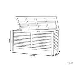 Elegante opbergbox van acaciahout. Met deze stevige, houten kist berg je al je tuinaccessoires of gereedschap op één plek op. Gemaakt van duurzaam acaciahout, met de juiste zorg is de doos weerbestendig en de items die geen bescherming tegen water nodig hebben, kunnen er het hele jaar in worden bewaard. Het mechanisme werkt soepel en laat gemakkelijk openen toe. Het is de perfecte opbergoplossing voor elke tuin.