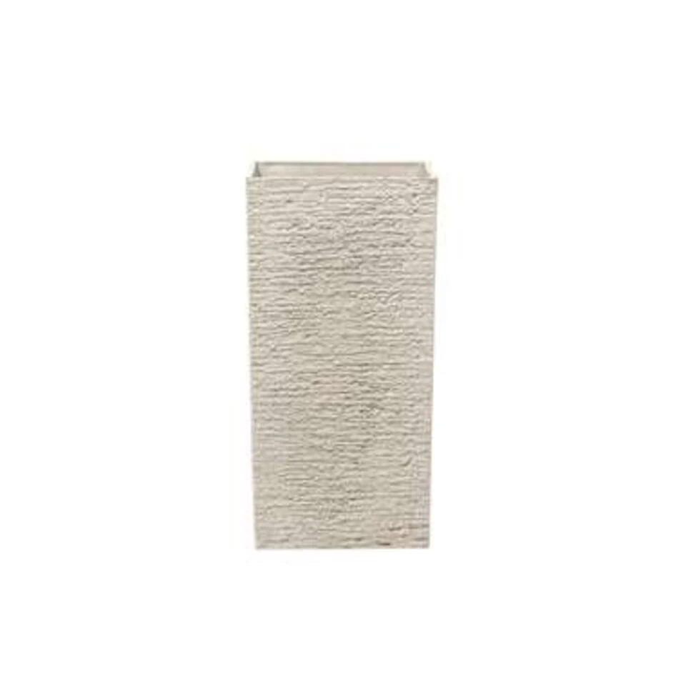 Hoge, vierkante plantenbak in beige, hoogte 70 cm. Een grote, vierkante bloempot is een populaire oplossing om het terras en de entree er wat sfeervoller uit te laten zien, maar staat ook erg leuk in kantoorruimten en openbare gebouwen. De lange, slanke vorm, het eenvoudige ontwerp en het beige, getextureerde oppervlak geven de bloempot een tijdloze look. De plantenbak is flexibel in gebruik zowel binnens- als buitenshuis.Wanneer het in de tuin of op het terras wordt gebruikt, kan de gemarkeerde plek gemakkelijk worden doorboord. Op elk moment kan overtollig water dan uit de pot stromen. Met een plug die bij de levering is inbegrepen, kan de opening indien nodig opnieuw worden gesloten. Het materiaal bestaat uit een mengsel van steen, polyresin en glasvezel en is daarom robuust, UV-bestendig, gemakkelijk in onderhoud en weerbestendig, zelfs bij zeer hoge of zeer lage temperaturen.
