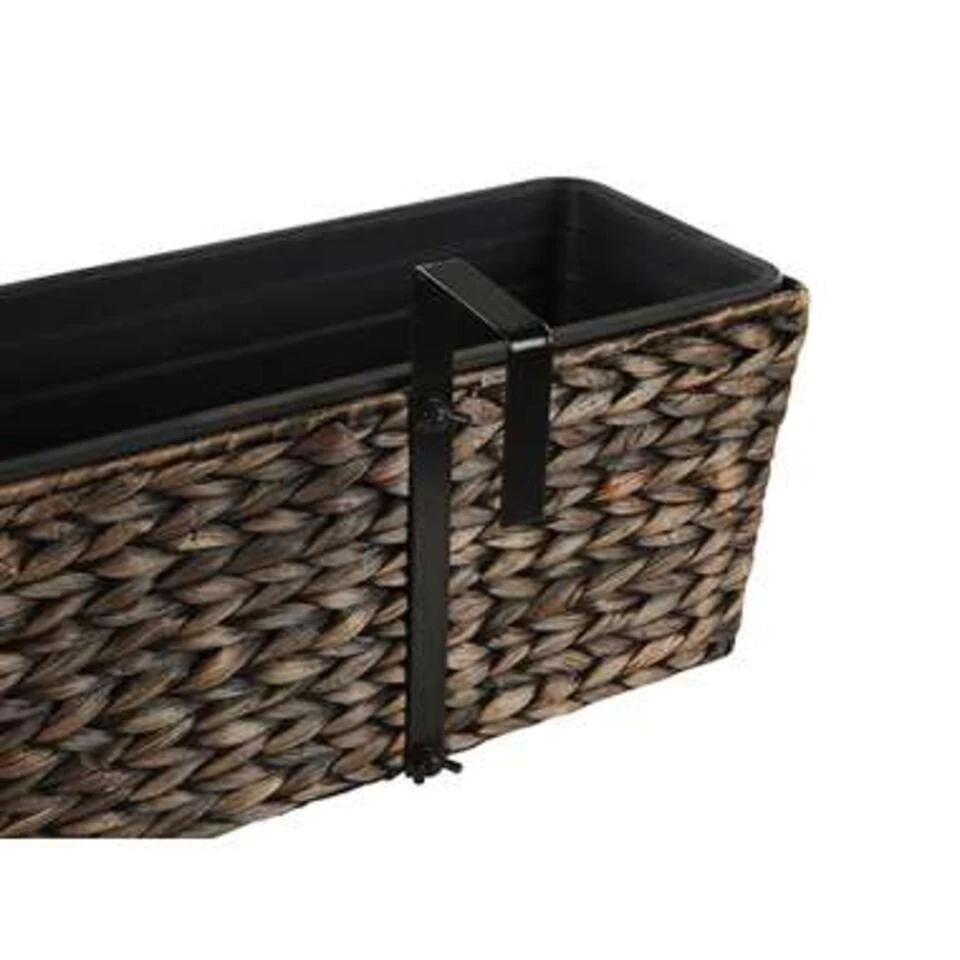 Rechthoekige balkonbak van waterhyacint voor binnen en buiten. Bevestig deze hangende plantenbak aan de buitenkant van je balkonreling om je zitplek te omringen met een zomeroase en te genieten van een groen uitzicht. De bakken zijn uitgerust met twee maatvaste inzetstukken voor beplanting, die de kuip beschermen tegen water en wortelgroei. De handgrepen kunnen indien nodig eenvoudig worden verwijderd, zodat je ze ook in de vensterbank kunt gebruiken. Omdat de bloembak is gemaakt van natuurlijke, gedroogde waterhyacint, is hij UV- en weerbestendig, bijzonder slijtvast, zeer duurzaam en ongedierte- en schimmelbestendig.