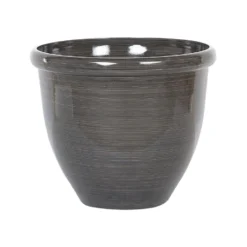 Ronde bloempotten in donkerbruin. Verbeter je binnen- of buitenruimte met deze stijlvolle, moderne bloempot. Met de ronde vorm en hoogglans finish, zal deze bloempot ongetwijfeld in verschillende woonruimtes, de tuin of op het balkon zijn plekje vinden. De pot is gemaakt van een steen en glasvezel-mengsel, is UV-bestendig en bestand tegen verschillende temperaturen. Als je deze pot buiten gaat gebruiken, vergeet dan niet een gaatje te boren op de gemarkeerde plaats in de bodem.