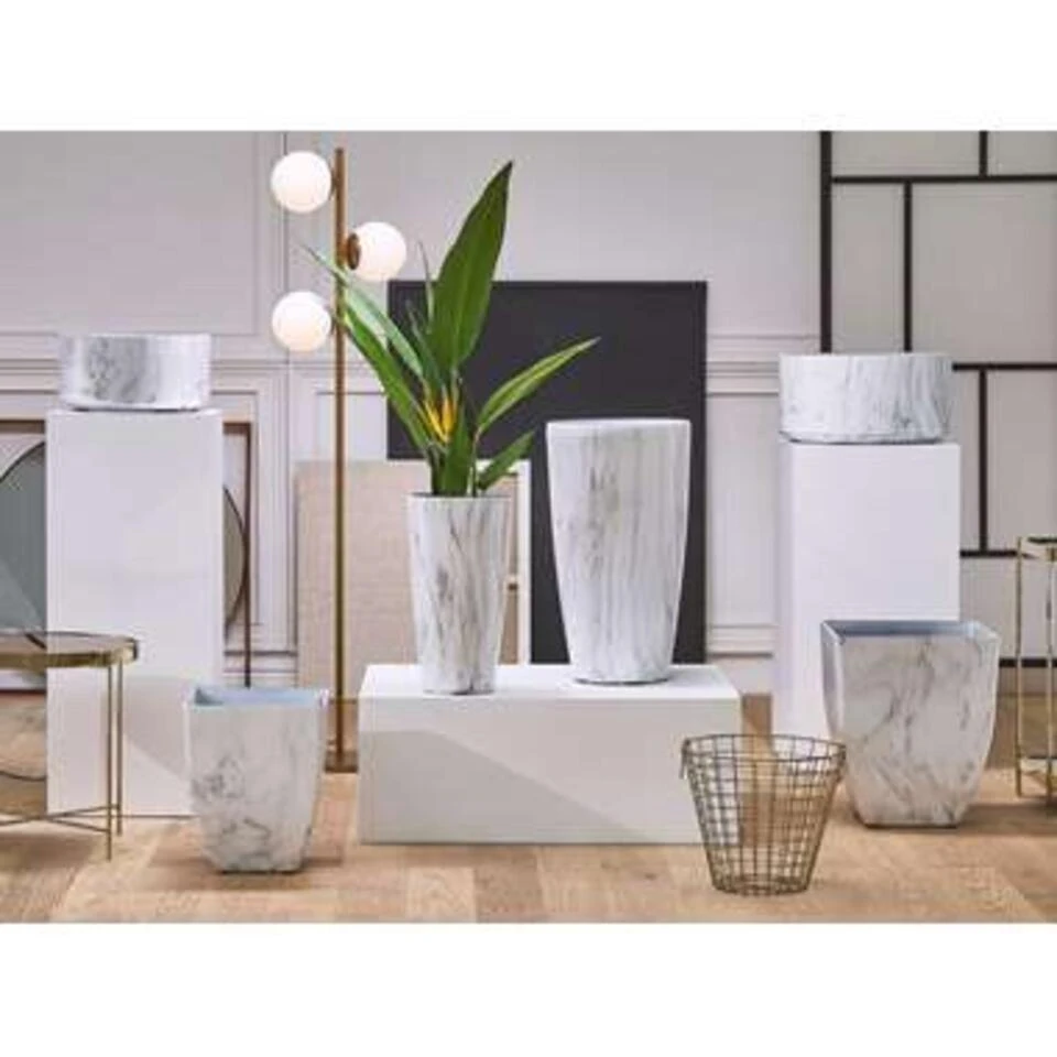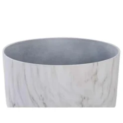 Moderne bloempot in komvorm met een glanzende marmerlook. De ronde, elegante vorm en de bijzondere marmerlook van deze bloembak passen in elke binnen- en buitenruimte. De komvormige bloempot ziet er stijlvol uit, alleen of ineen groep, en laat het hart van elke natuur- en plantenliefhebber sneller kloppen. Deze bloempot is gemakkelijk schoon te maken, heeft een laag gewicht, een lange levensduur en is bestand tegen zeer hoge en lage temperaturen. Bij gebruik in de tuin kan indien nodig een geprefabriceerde opening in de bodem van de pot worden geboord. Overtollig water kan zo op elk moment wegstromen.