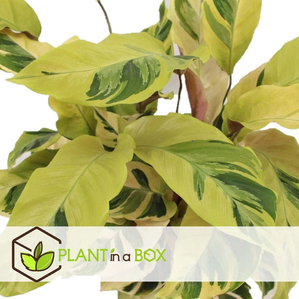 Met de Calathea Fusion Yellow haal je niet alleen een prachtige plant in huis, maar ook nog eens een zeldzame! Het komt niet vaak voor dat een Calathea soort gele tekeningen op het blad heeft. De Calathea Fusion Yellow steelt dan ook de show in elk interieur met haar bijzondere bladeren. De Calathea komt oorspronkelijk uit het oerwoud van Zuid-Amerika waar ze voornamelijk in de schaduw van grote bomen groeit. Vandaar dat deze plant het erg goed doet op een schaduwrijker plekje in huis. De Calathea staat ook wel bekend als ‘Prayer Plant’, omdat ze haar bladeren ’s avonds sluit en ’s ochtends weer open. Als je erg stil bent kun je zelfs het geritsel horen!Â