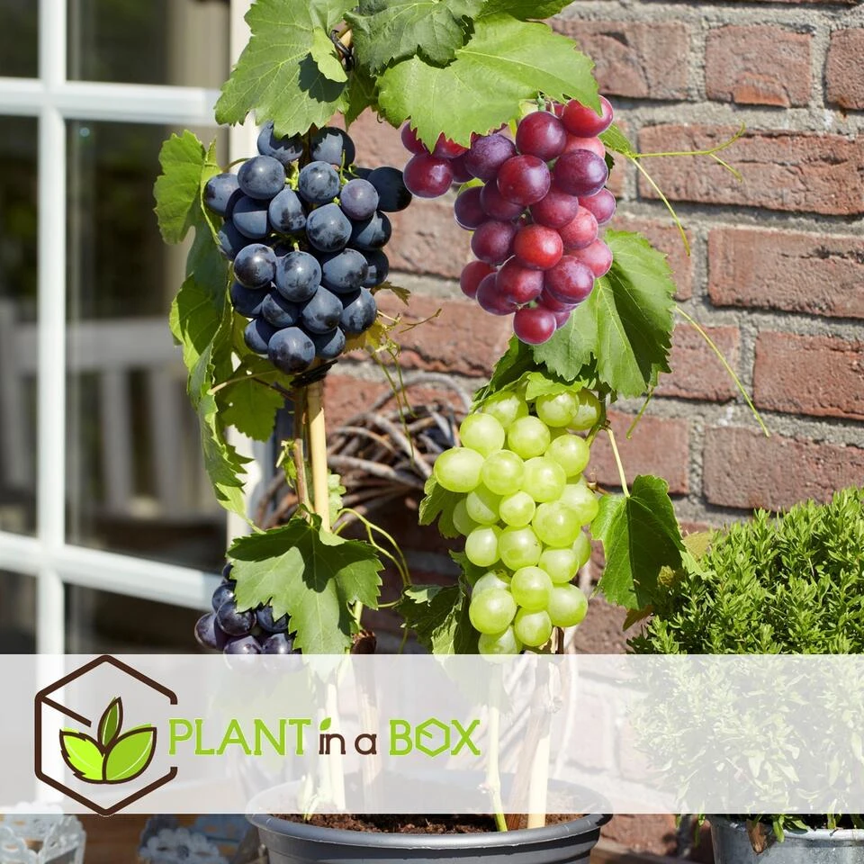 Kweek je eigen druiven met deze prachtige mix van drie verschillende soorten druivenplanten. Druiven, of officieel “Vitis Vinifera”, zijn prachtige klimplanten die doen denken aan het warme zuiden en uw tuin of balkon een heerlijke mediterrane sfeer geven. Laat ze groeien en klimmen op een zonnige plek tegen een schutting of langs een muur. De planten kunnen zowel in de tuin als in een pot worden gehouden. De mix bevat de volgende druivensoorten: Vitis vinifera ‘Cabernet franc’ (blauw), ‘pinot gris’ (rood) en ‘Chardonnay’ (wit).