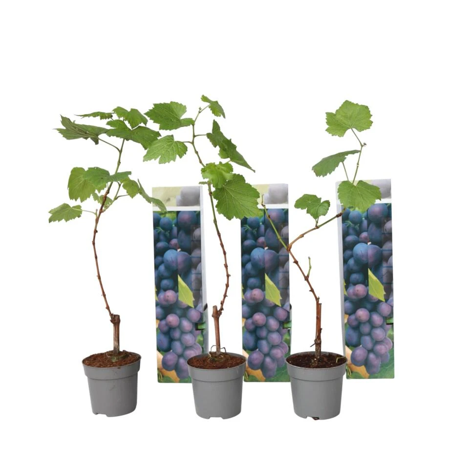 Kweek je eigen druiven met deze prachtige set van drie blauwe druivenplanten. Druiven, of officieel “Vitis Vinifera”, zijn prachtige klimplanten die doen denken aan het warme zuiden en uw tuin of balkon een heerlijke mediterrane sfeer geven. Laat ze groeien en klimmen op een zonnige plek tegen een schutting of langs een muur. De planten kunnen zowel in de grond als in een pot worden gehouden. In deze set ontvang je drie Vitis vinifera ‘Cabernet franc’. Van deze blauwe wijndruif wordt rode wijn gemaakt! De planten worden geleverd met een hoogte van 25-40cm (gemeten inclusief pot).