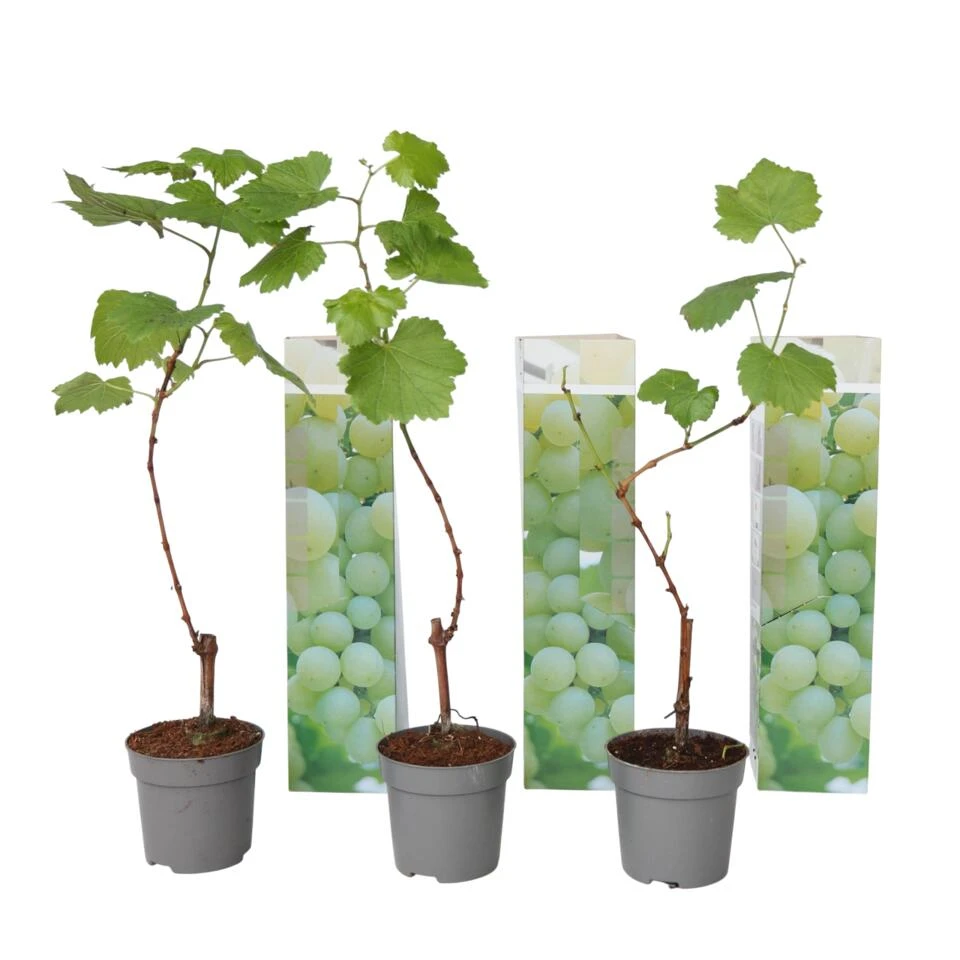 Kweek je eigen druiven met deze prachtige set van drie witte druivenplanten. Druiven, of officieel “Vitis Vinifera”, zijn prachtige klimplanten die doen denken aan het warme zuiden en uw tuin of balkon een heerlijke mediterrane sfeer geven. Laat ze groeien en klimmen op een zonnige plek tegen een schutting of langs een muur. De planten kunnen zowel in de grond als in een pot worden gehouden. In deze set ontvang je drie Vitis vinifera βChardonnayβ. Van deze witte wijndruif wordt Champagne en Bourgognewijn gemaakt! De planten worden geleverd met een hoogte van 25-40cm (gemeten inclusief pot).