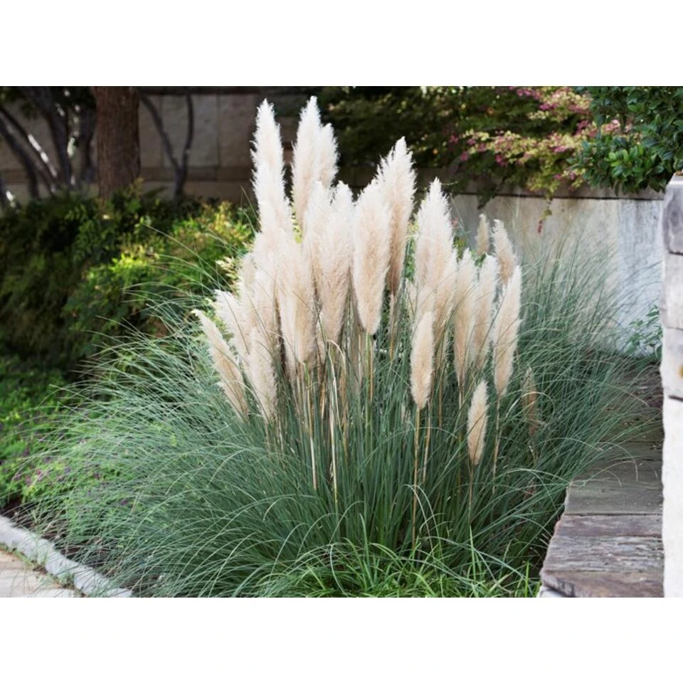 In een notendop Pampasgras herken je aan de zachte, lichtgele pluimen. Deze fijne, opstaande pluimen komen tevoorschijn tijdens de bloeiperiode van augustus tot september. Het is vernoemd naar de plek waar ze vandaan komen; de pampa. Dit is een subtropisch grasland dat zich strekt van de Atlantische Oceaan tot aan het Andesgebergte. In Nederlandse tuinen kom je vrouwelijk variant tegen van deze tweehuizige plant. Deze variant heeft namelijk grote, sierlijke pluimen. De Cortaderia selloana βMini Pampasβ is de kleinste variant van pampasgras, die ook wel bekend staat als dwergpampasgras. Deze variant bereikt met zijn pluimen een maximale hoogte van 75 cm boven de grond. De pluimen kun je prima gebruiken als versiering, door ze binnen in een vaas te zetten. Alles op een rijtje – Geleverd als set van 2 XL Cortaderia selloana βMini Pampasβ planten- De leveringshoogte van deze planten zijn 40-45 cm (incl. pot)- Geleverd in kweekpotten van 17 cm- Fijne, lichtgele pluimen in het vroege najaar- Blijft groen in de winter Verzorging Pampasgras staat het liefst op een goed doorlatende grond, met zoβn 1-3 stuks per vierkante meter. Ze doen het goed in de volle zon of op een plek met lichte schaduw. Tijdens droge periodes kun je ze eventueel wat water geven. In de winter hoef je ze geen extra water te geven. Bloomique Bloemen en planten brengen de plaatsen waar we leven, pas echt tot leven. Het zijn aankopen of cadeauβs waar je geen genoeg van krijgt. Ons assortiment van kamer- en tuinplanten heeft voor ieder interieur en tuin een stijlvolle match. Een sfeervol thuis, dat is pas een fijn geschenk! Door altijd fair-trade te handelen garanderen we dat jij niet de enige bent die gelukkig wordt van onze bloemen en planten.Bloomique streeft naar optimale bescherming tijdens de verzending. Onze speciale plantenverpakking zorgt er voor dat de plant op de juiste positie blijft. Onze verpakkingstechniek houdt rekening met het beschermen van de wortels, bladeren en bloemen van de plant. Zo blijven ze gezond en onbeschadigd als ze onderweg zijn met de pakketdienst naar jou! Iedere plant is uniek. De afbeeldingen die je hier ziet zijn van de verwachte resultaten wanneer de planten volgroeid zijn. Verschillende groeiomstandigheden kunnen voor een andere uitkomst zorgen. Ga daarom voor aankoop goed na of deze planten geschikt zijn voor jouw huis of tuin.