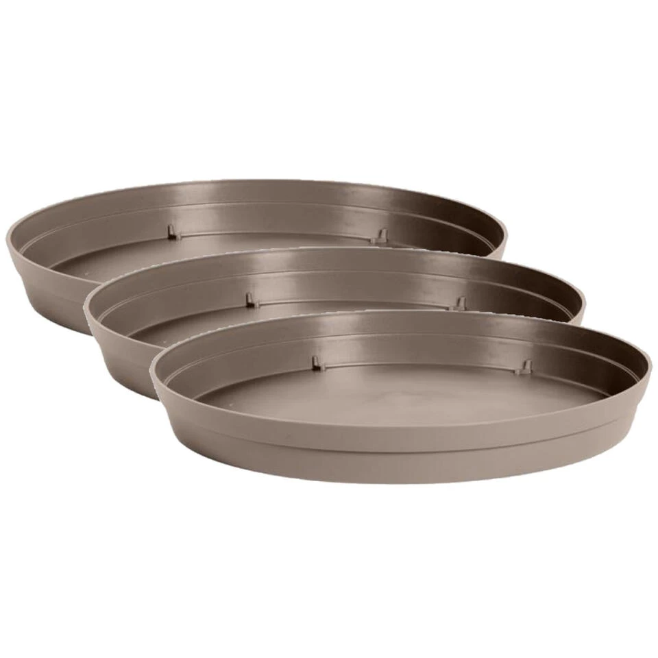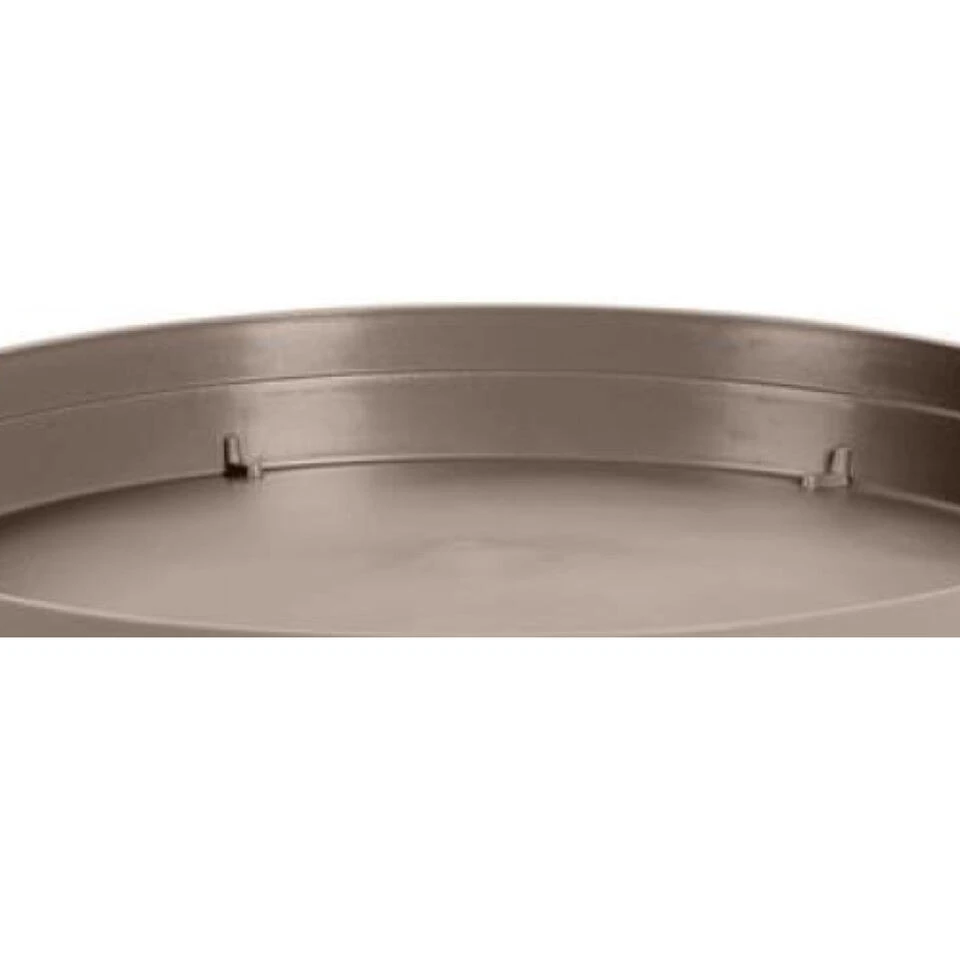 Bloempot onderschaal Toscane. De opvangschaal is geschikt voor een plantenpot met een diameter van 44, 46 en 48 cm. Diameter opvangschaal: 35 cm. Materiaal: kunststof. Kleur: taupe.