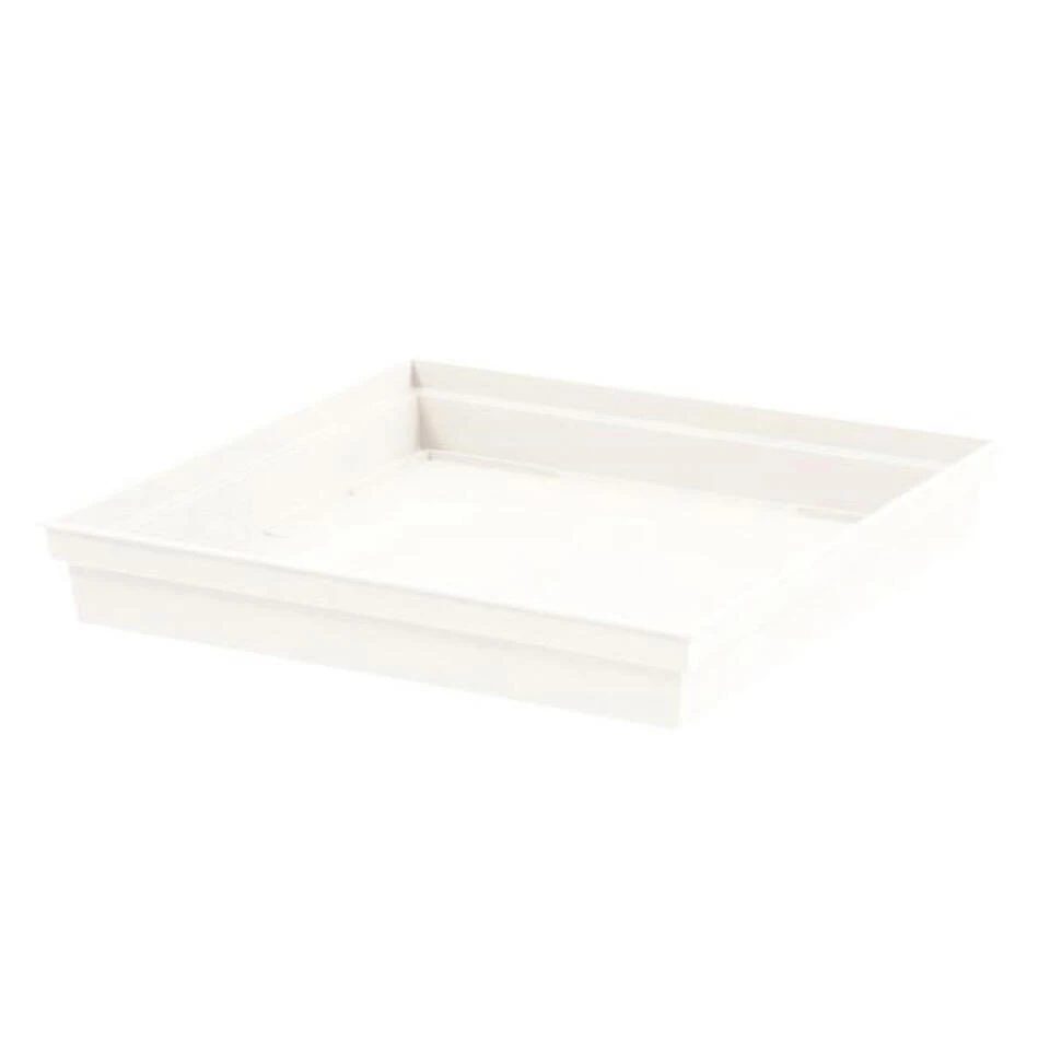 Bloempot onderschaal Toscane. De opvangschaal is geschikt voor een vierkante plantenpot met een afmeting van L39 x B39 cm. Afmetingen schaal: L33 x B33 x H5 cm. Materiaal: kunststof. Kleur: wit.