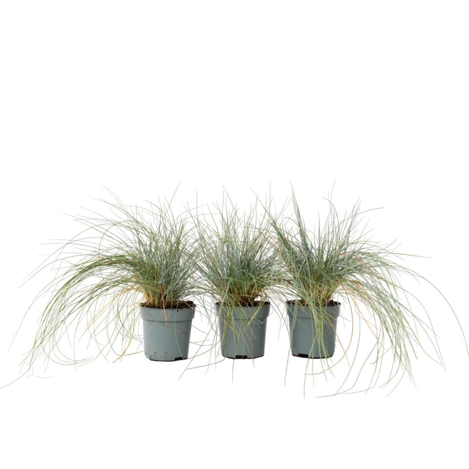 Deze prachtige blauwgrijze grasbollen zijn een van de meest populaire grassen. De Festuca glauca ‘Elijah Blue’ wordt ook wel Blauw Zwenkgras genoemd. Het is een zeer stijlvolle tuinplant en een uitstekende groenblijvende bodembedekker. De planten ‘Elijah Blue’ zien eruit als kleine kussentjes in de tuin. Deze mooie ronde vormen bestaan uit zeer fijne, intens ijsblauwe bladeren die in de winter groener kleuren. Van het late voorjaar tot de zomer groeit de plant met smalle, blauwgroene bloempluimen die goudbruin verkleuren.