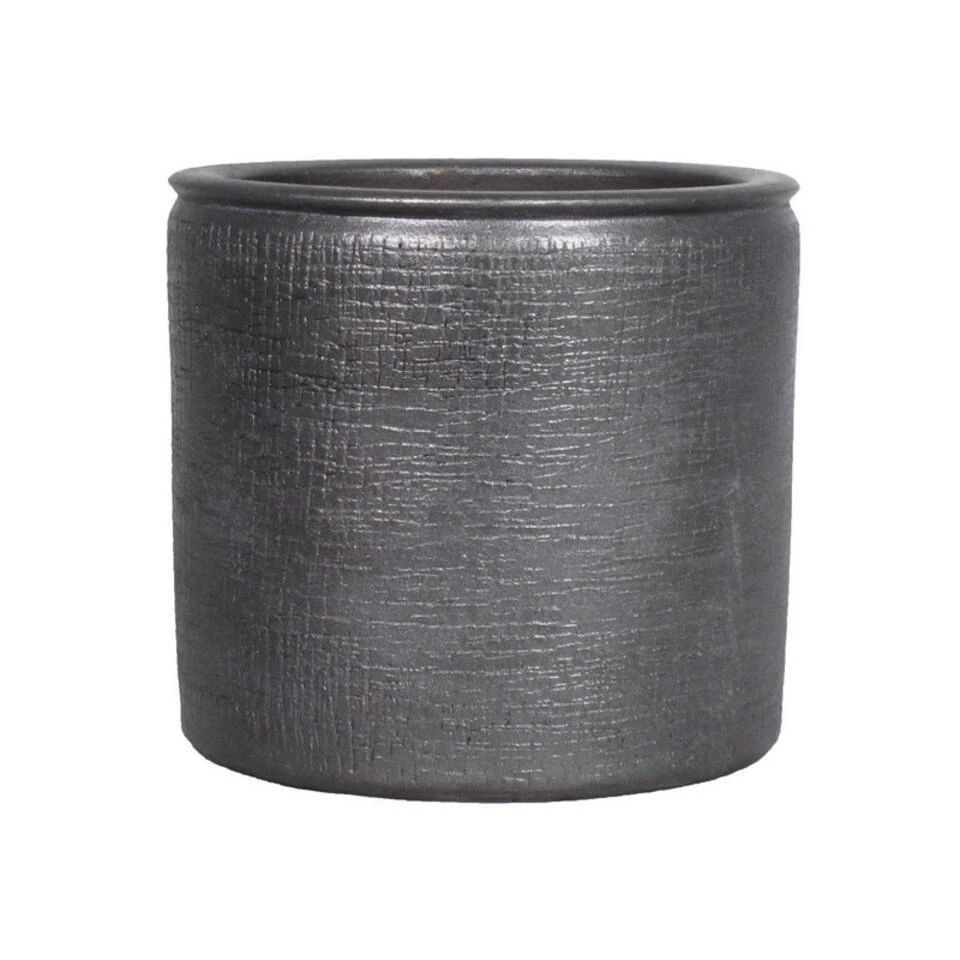 Bloempot/plantenpot van keramiek in het industrieel zwart. Bloempotten met een mooi zwart relief afwerking aan de buitenkant. Gewicht: 4.46 kilo. Het keramiek heeft een coating zodat het geen water opzuigt. Stijlvolle plantenpotten voor binnen gebruik. Formaat: diameter 29 cm, hoogte 27 cm.