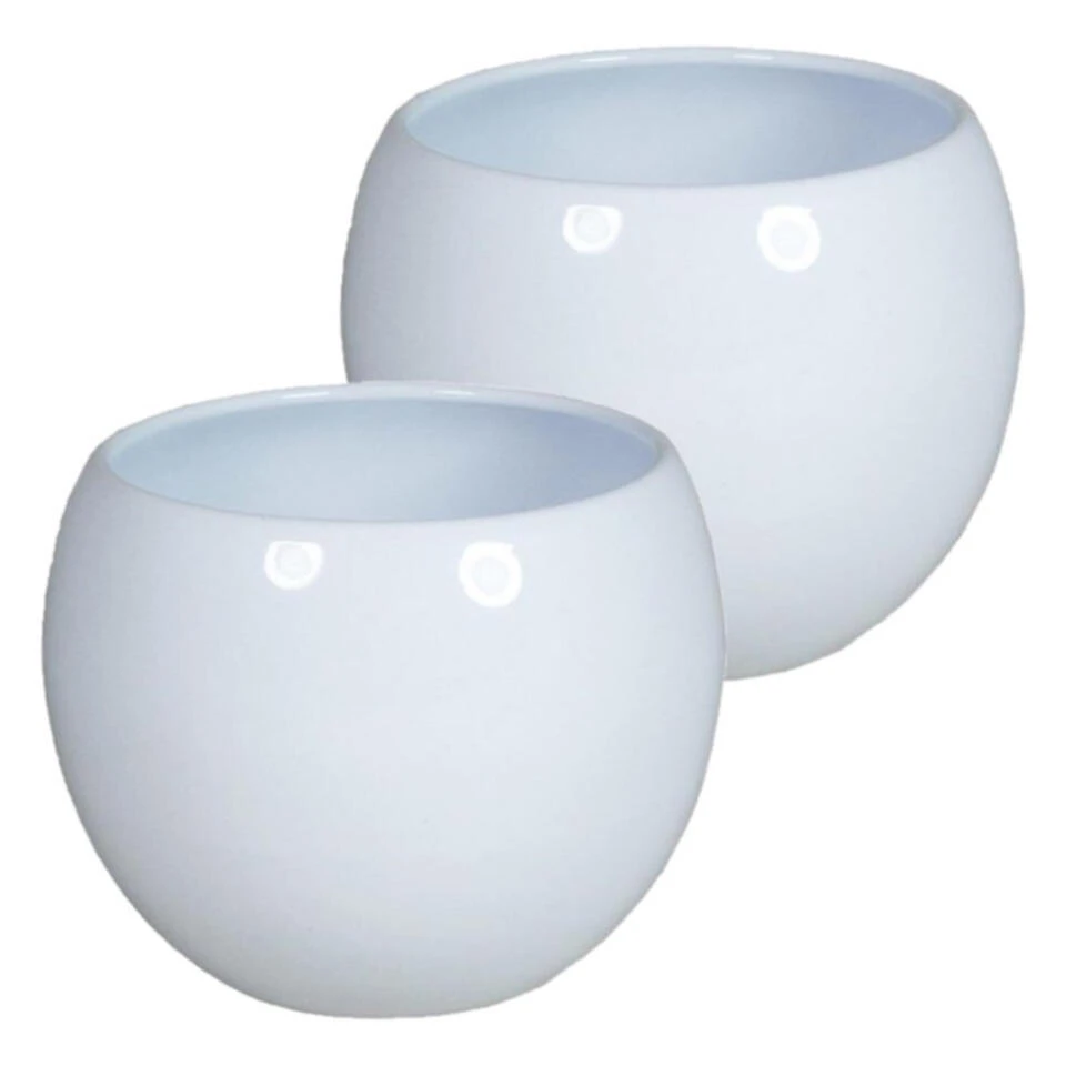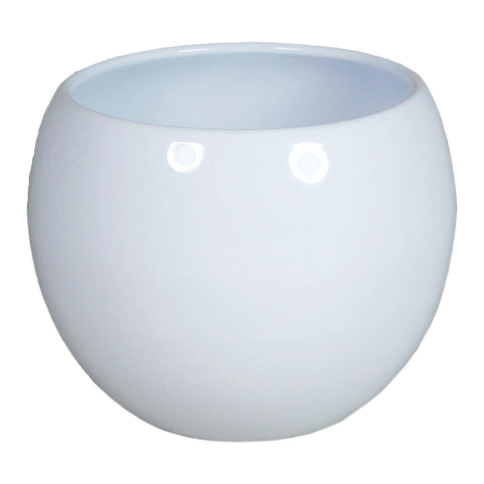 Bloempot/plantenpot van keramiek in glanzend wit met Diameter 9/13.5 cm en Hoogte 9.5 cm. Bloempotten voor binnen gebruik.