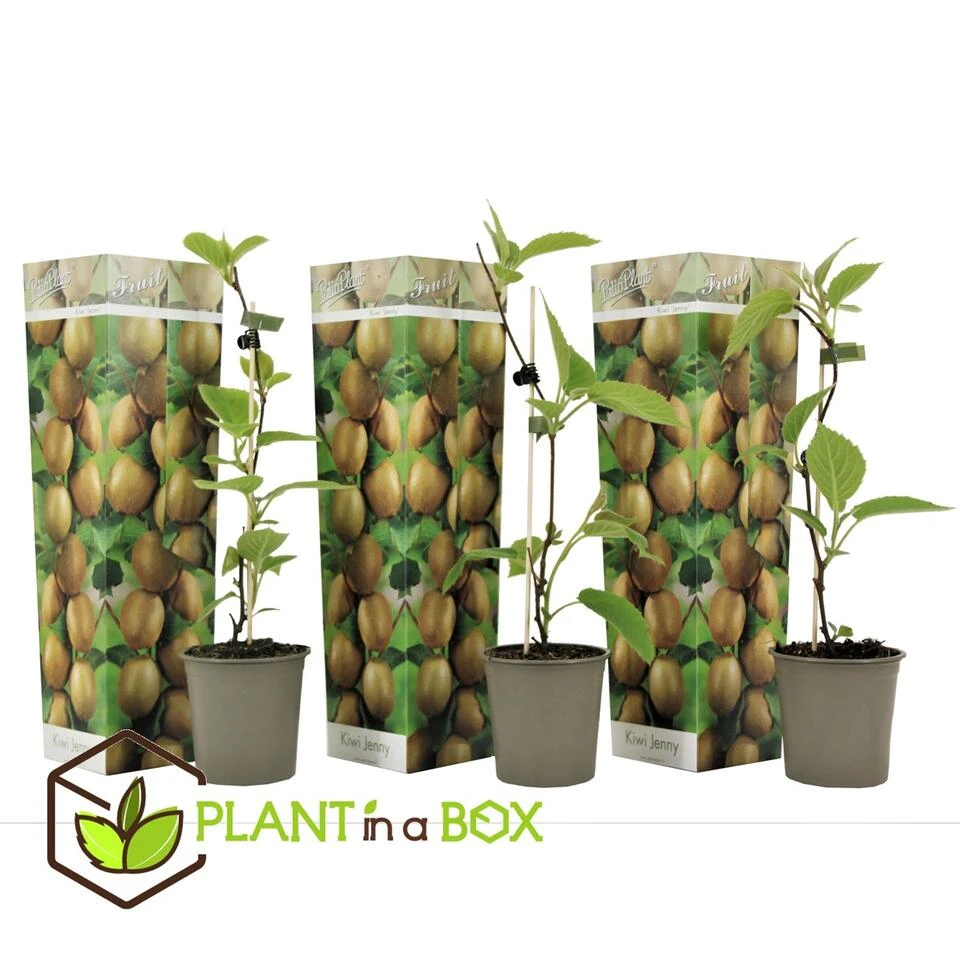 ProductinformatieDe Actinidia Deliciosa ‘Jenny’ is zelfbestuivend, in tegenstelling tot veel andere soorten kiwi. Dit betekent dat je dus geen mannelijke en vrouwelijke kiwiplant hoeft aan te planten om vruchten te krijgen. Het duurt wel een paar jaar voordat de kiwi’s beginnen te groeien, namelijk na 3 tot 4 jaar. Maar zodra de plant is begonnen met het groeien van kiwi’s zullen er in de jaren erna heel veel heerlijke vruchten volgen. Naast de heerlijke kiwi’s heeft de Actinidia Deliciosa in mei en juni prachtige wit-roze bloemetjes die de tuin opfleuren. Om de kiwi’s zo zoet mogelijk te houden is het belangrijk om de kiwi’s zo lang mogelijk aan de kiwiplant te houden. De kiwi’s kunnen in oktober en november geoogst worden.