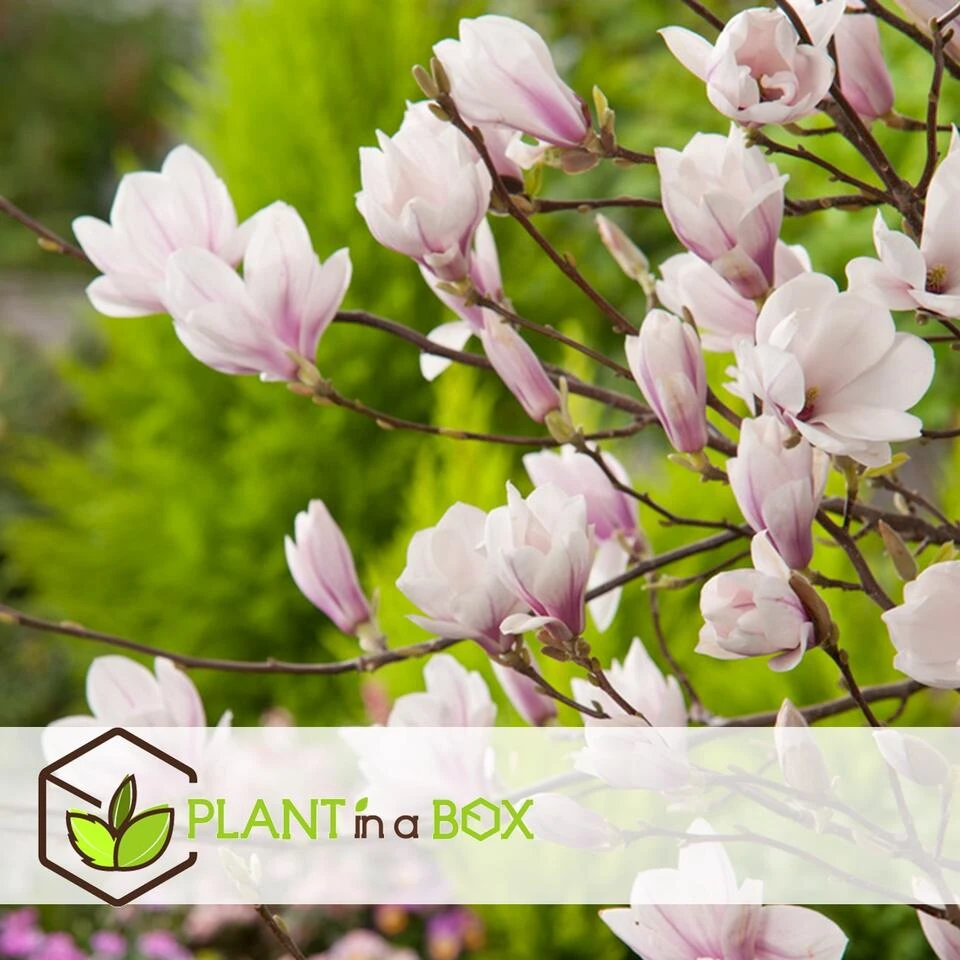 Haal het ultieme lentegevoel in de tuin met de Magnolia Soulangeana. De Magnolia is dè blikvanger in elke tuin. De Magnolia ‘Soulangeana’ is de populairste Magnolia soort, en dat is niet gek. De Magnolia Soulangeana bloeit in april met prachtige grote tulpvormige bloemen in een romantische lichtroze kleur. Deze bloemen zijn niet alleen mooi, ze verspreiden ook nog eens een heerlijke geur. De plant kan zelfs een tweede bloei krijgen in de zomermaanden. De glanzende grote bladeren verschijnen tijdens of na de bloei. De Magnolia is bladverliezend en winterhard.