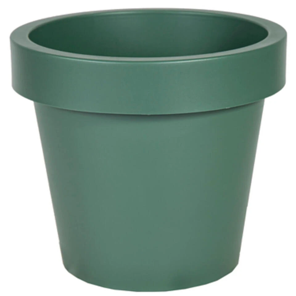 Plantenpot/bloempot uit de Linea Iris serie gemaakt van kunststof in de kleur donkergroen met gladde matte buitenzijde. Deze basic ronde bloempot is een mooie toevoeging aan uw tuin of terras. De pot is waterdicht met de mogelijkheid om aan de overkant afwateringsgaten in te maken, zijn al voorgeboord. Formaat: Diameter 35 cm x Hoogte 31 cm.