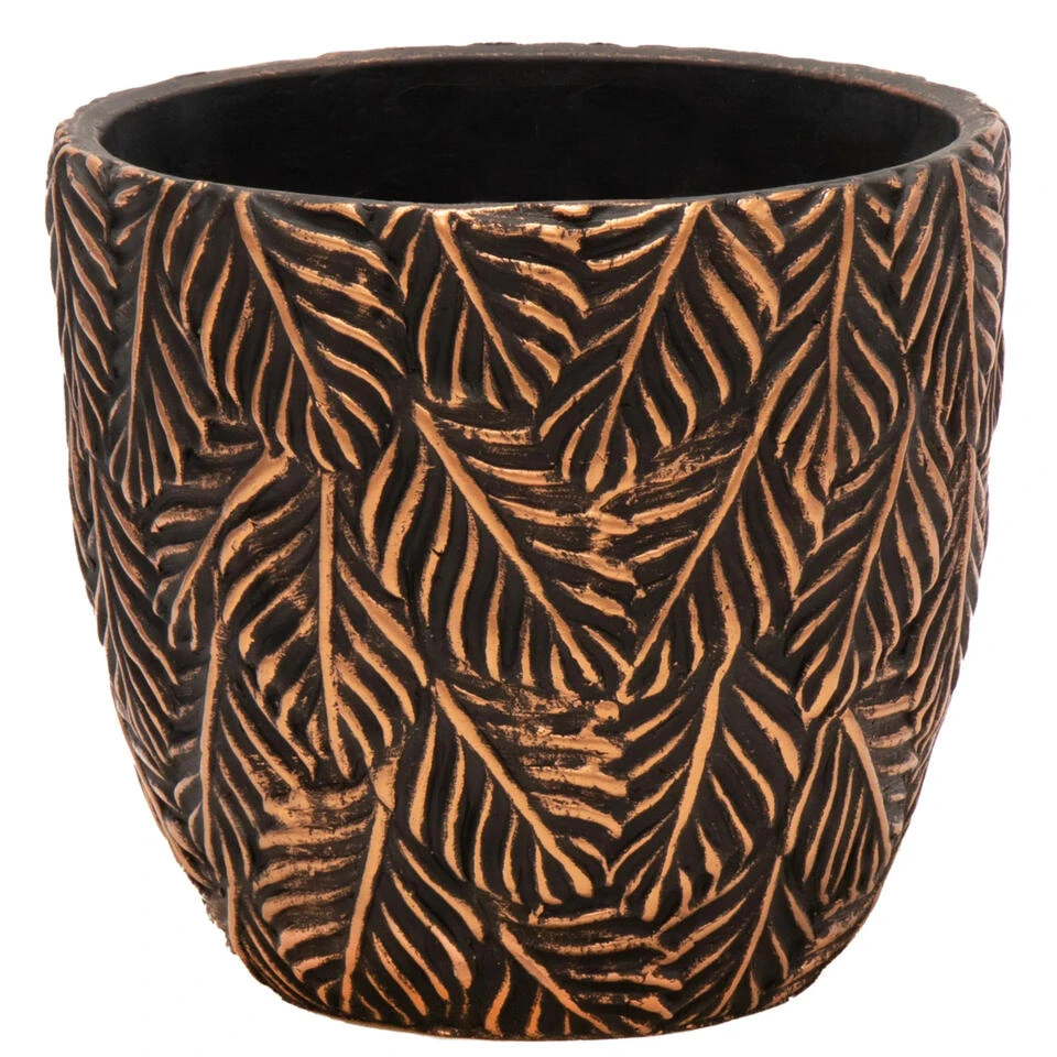 Mega Collections Plantenpot – Keramiek – Antraciet/brons – D14 Cm