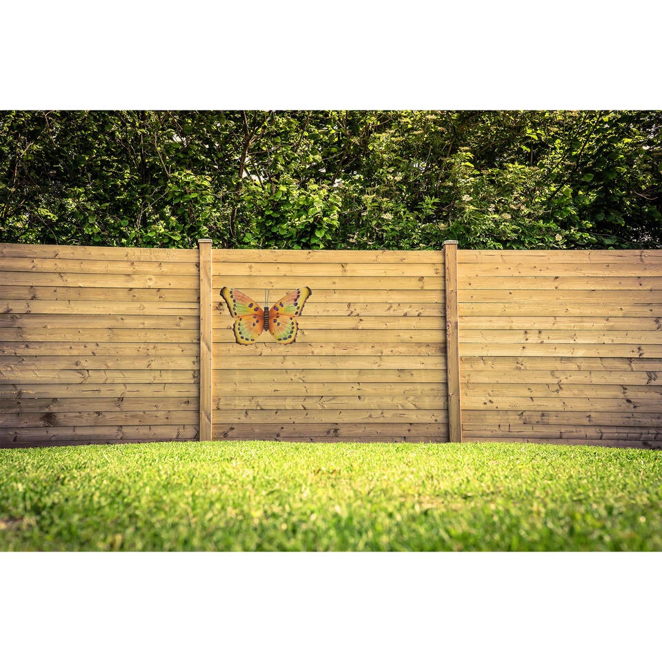 Merkloos Tuin/schutting Decoratie Geel/paarse Vlinder 35 Cm