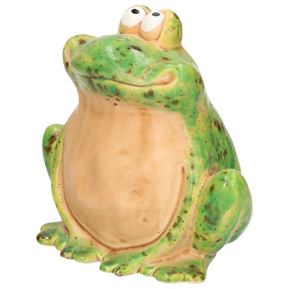Merkloos Tuinbeeld Kikker Zittend – Kunststeen – H17 Cm – Groen