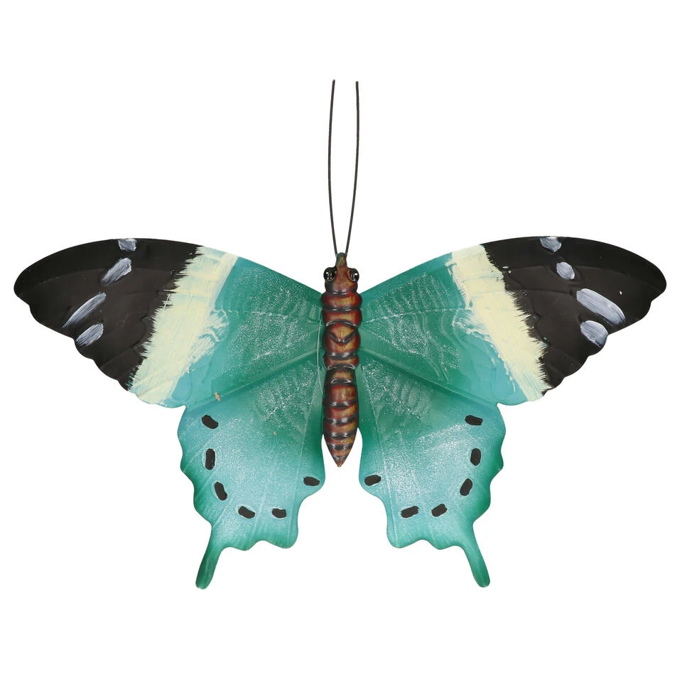 Merkloos Tuindecoratie Muurvlinder – Zwart En Turquoise Blauw – Metaal – 44 Cm