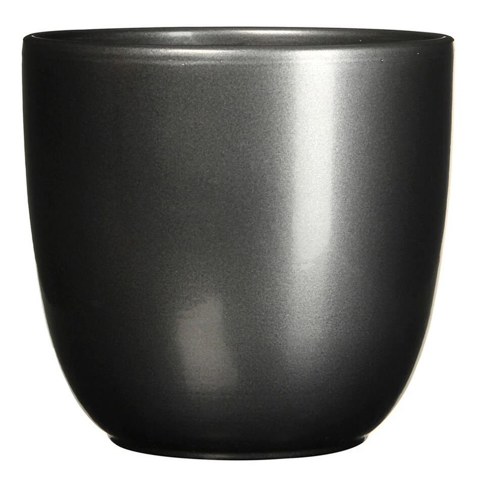 Bloempot in de kleur antraciet grijs in een mooi glans motief keramiek voor een kamerplant H18.5 x D19.5 cm. Deze ronde bloempot uit de Tusca home basics serie past altijd goed in elke huis/interieur. Gemaakt van terracotta/keramiek. Diameter: 19.5 cm. Hoogte: 18.5 cm.