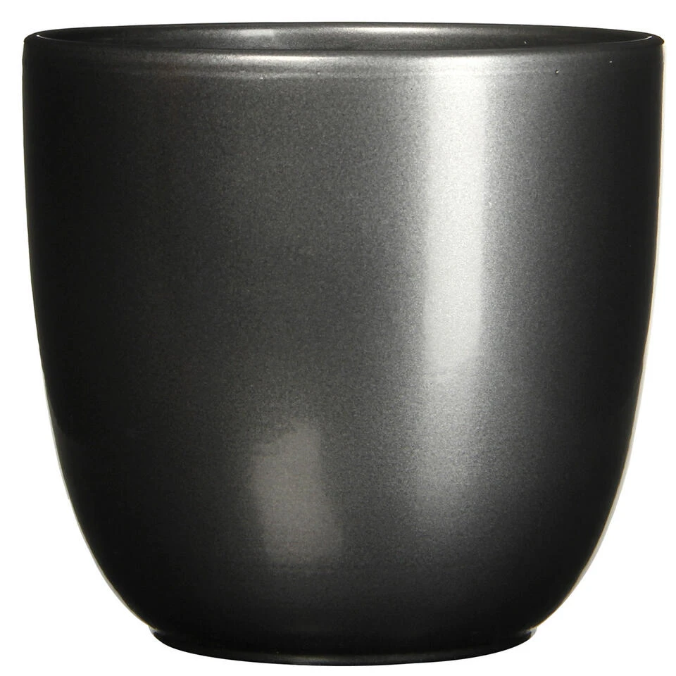 Bloempot in de kleur antraciet grijs in een mooi glans motief keramiek voor een kamerplant H28.5 x D31 cm. Deze ronde bloempot uit de Tusca home basics serie past altijd goed in elke huis/interieur. Gemaakt van terracotta/keramiek. Diameter: 31 cm. Hoogte: 28.5 cm.