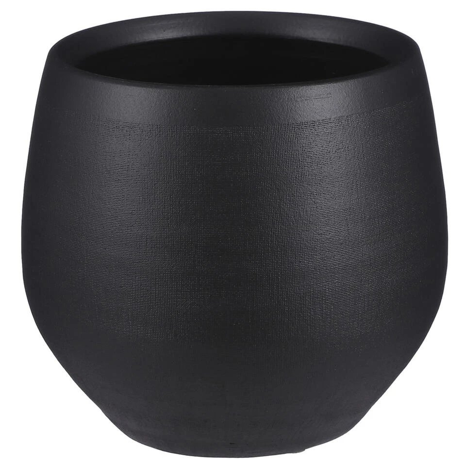 Bloempot in de kleur mat zwart gemaakt van keramiek voor een kamerplant – H20 x D23 cm. Deze ronde bloempot uit de Boule serie met mooie afwerking is een bloempot/plantenpot basic voor in elke huiskamer. Gemaakt van terracotta/keramiek. Binnen gebruik. Diameter: 23 cm. Hoogte: 20 cm.