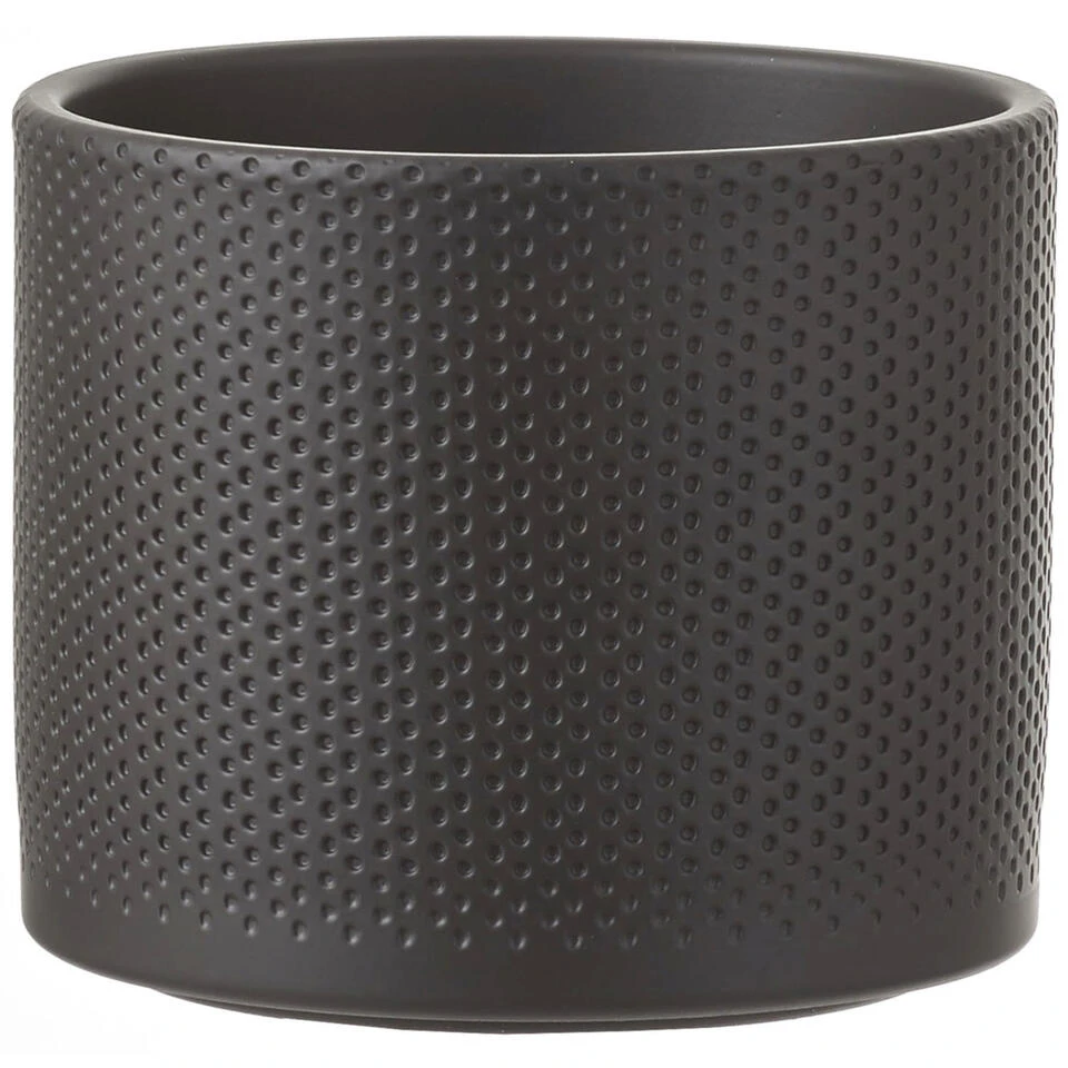 Mica Decorations Bloempot – Donkergrijs – Relief – Keramiek – 13 Cm