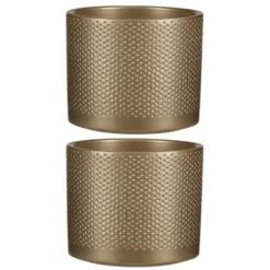 Mica Decorations Bloempot – Goudkleurig – Relief – Keramiek – 13 Cm