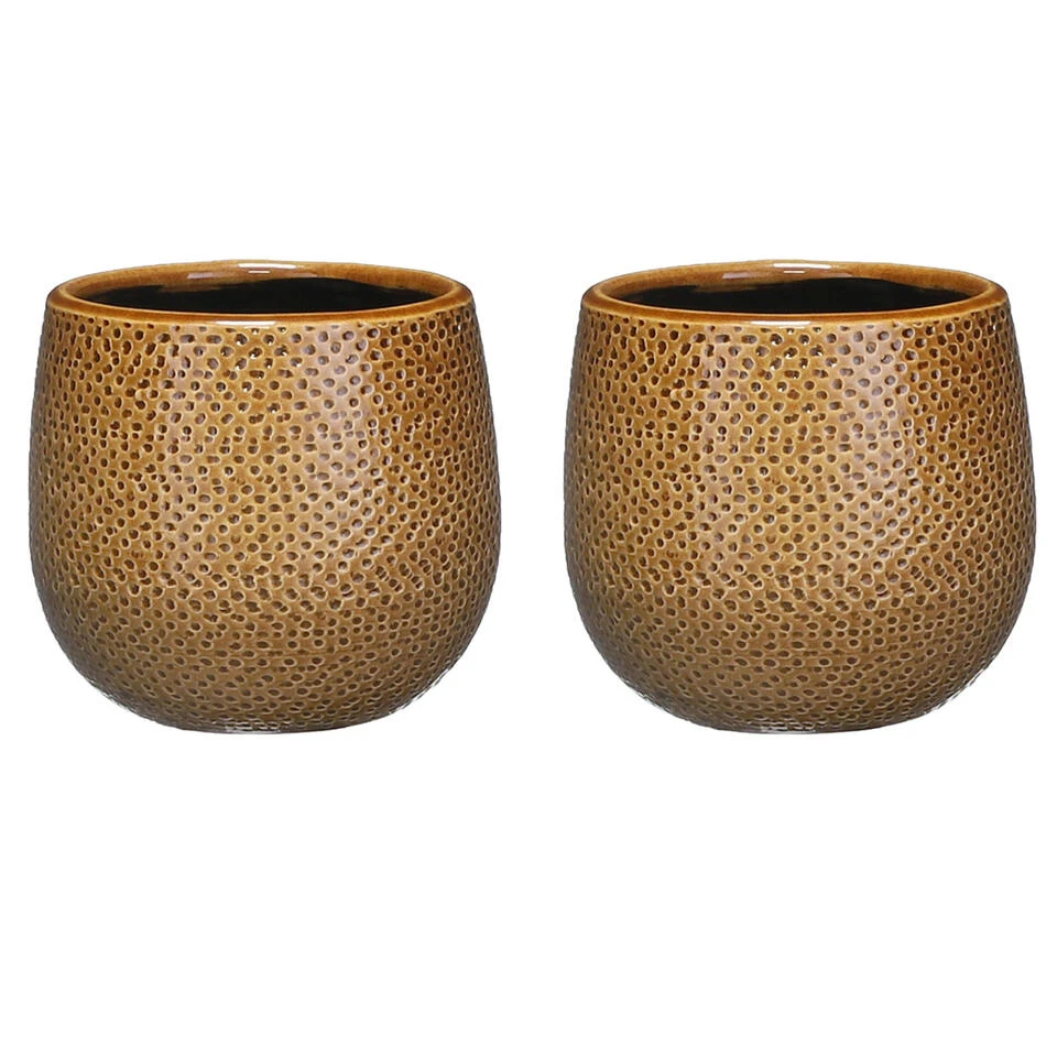 Mica Decorations Bloempot – Okergeel – Keramiek – Ribbel – 14 X 12 Cm