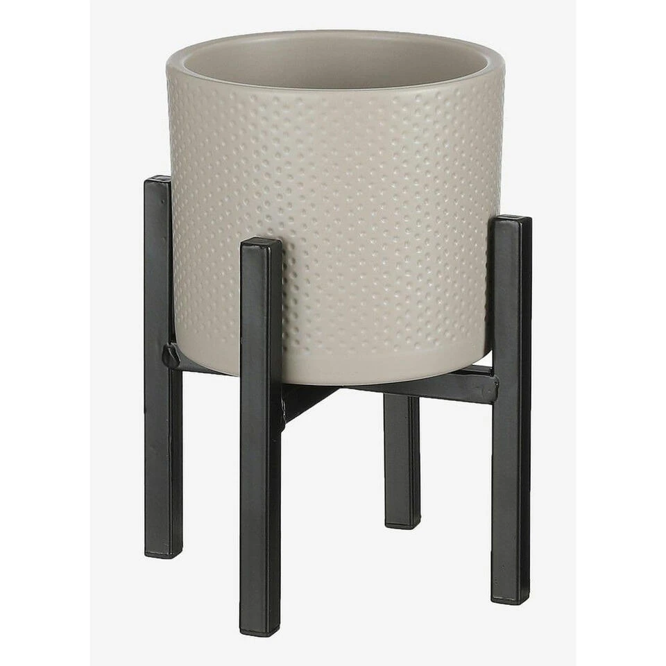 Mica Decorations Bloempot – Taupe – Relief – Keramiek – 28 X 26 Cm
