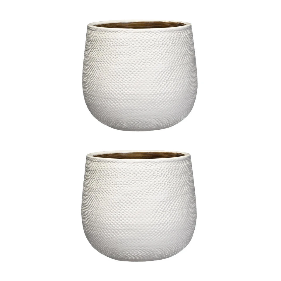 Mica Decorations Bloempot – Wit – Keramiek – Ribbels – 21 X 19 Cm