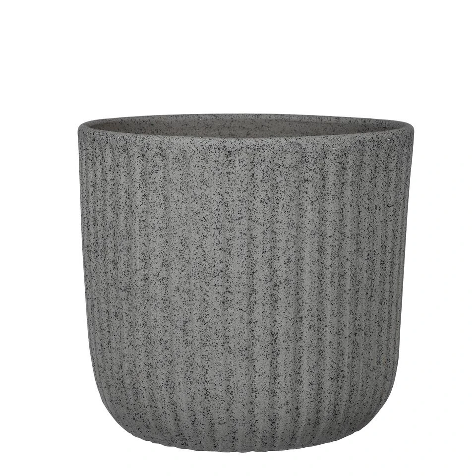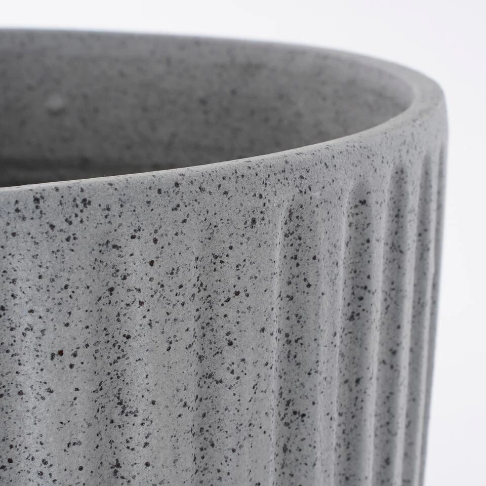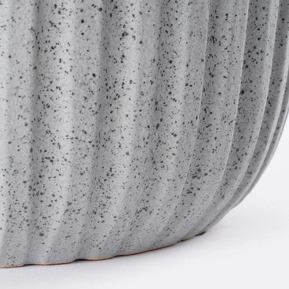 Geef jouw plant een mooie plek in huis met de Dante bloempot van Mica Decorations. De pot wordt gemaakt in Portugal, waar gebruik wordt gemaakt van hoogwaardige terracotta klei. Hierna is de pot geheel met de hand afgewerkt, waardoor elk item uniek is. Opvallend aan het verder strakke design zijn de verticale ribbels. Daarnaast heeft de bloempot een gespikkelde finish in een moderne, donkergrijze kleur. Mooi in vele interieurs! De Dante bloempotten zijn verkrijgbaar in verschillende kleuren en maten. Dit donkergrijze model is 24 cm hoog en heeft een diameter van 27 cm. Let op: Terracotta potten zijn poreus en nooit 100% waterdicht. Wij raden daarom aan een schotel of plastic binnenpot te gebruiken.