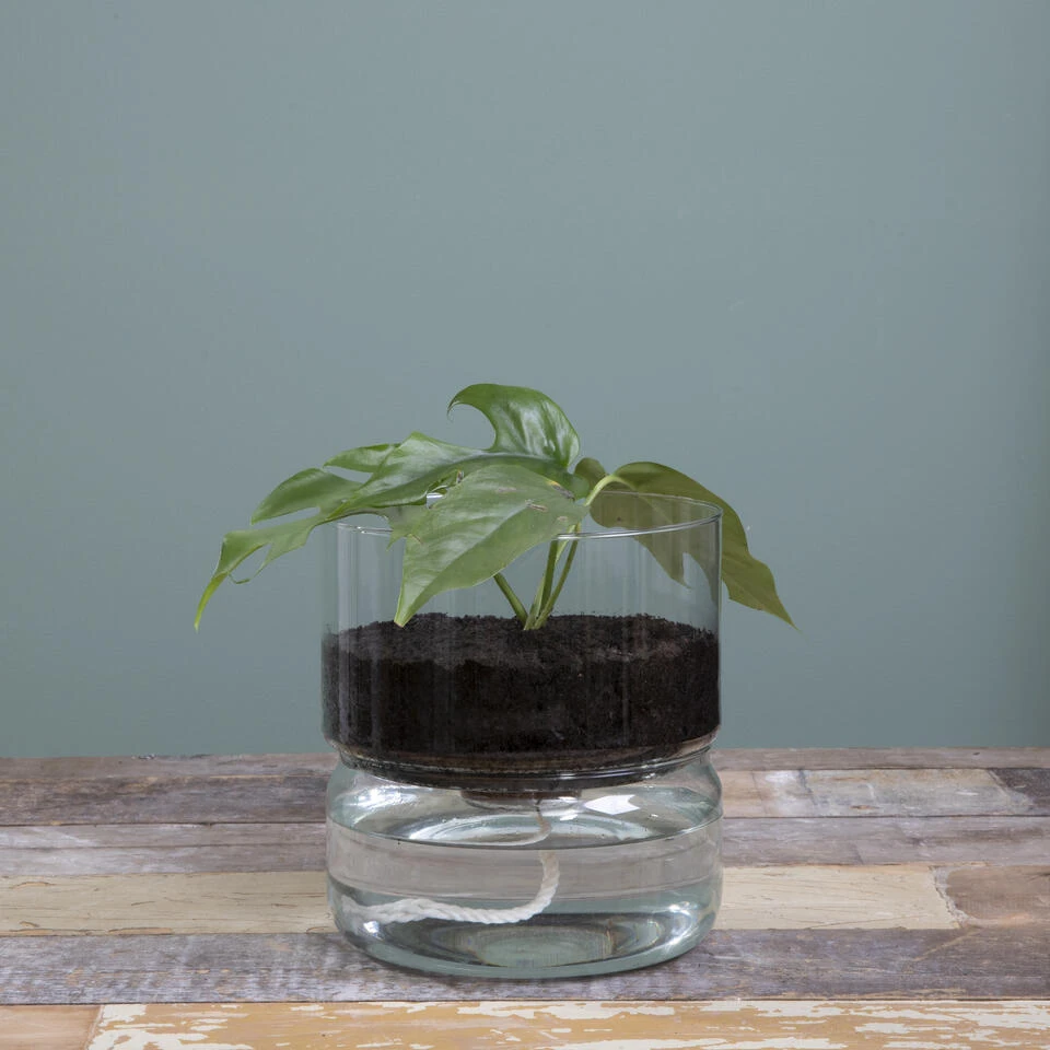Vergeet jij ook altijd om je planten water te geven? Vanaf nu niet meer! Dit bewateringssysteem van Mica Decorations hoef je namelijk maar één keer te vullen, daarna geeft de plant zichzelf water. Daarnaast is dit ook nog eens een hele bewuste keuze, want het glas is 100% gerecycled. Vul de onderkant met water, poot in het bovenste deel een leuk plantje en genieten maar!