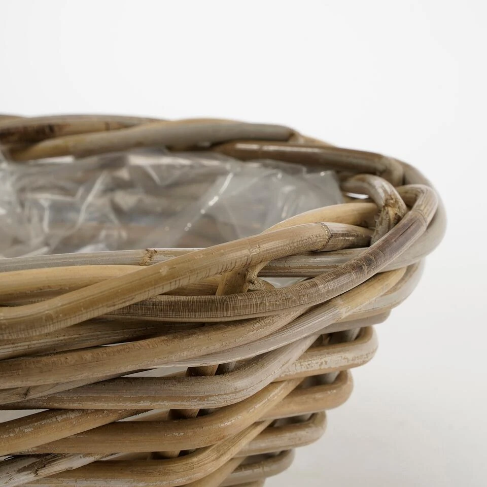 Iets anders dan een bloempot in de tuin? Ga voor natuurlijke plantenmanden, zoals de Marcia van Mica Decorations. De mand is handgemaakt van rotan en uitgevoerd in een vergrijsde kleur. De binnenkant is voorzien van een plastic liner, waardoor je er gemakkelijk een plant in kan poten. Leuk voor op het terras of het balkon! De Marcia manden zijn verkrijgbaar in verschillende afmetingen en erg goed met elkaar te combineren. Zet ze speels bij elkaar, of verspreid ze om een mooie eenheid te creëren. Dit model is 12 cm hoog en heeft een diameter van 41 cm.