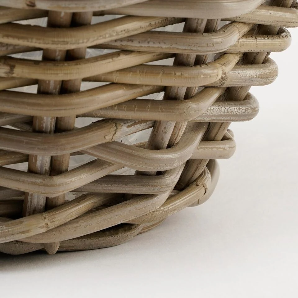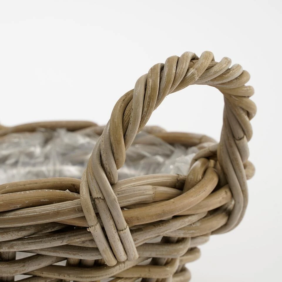 Iets anders dan een bloempot in de tuin? Ga voor natuurlijke plantenmanden, zoals de Marcia van Mica Decorations. De mand is handgemaakt van rotan en uitgevoerd in een vergrijsde kleur. De binnenkant is voorzien van een plastic liner, waardoor je er gemakkelijk een plant in kan poten. Leuk voor op het terras of het balkon! De Marcia manden zijn verkrijgbaar in verschillende afmetingen en erg goed met elkaar te combineren. Zet ze speels bij elkaar, of verspreid ze om een mooie eenheid te creëren. Dit model is 18 cm hoog en heeft een diameter van 43 cm.