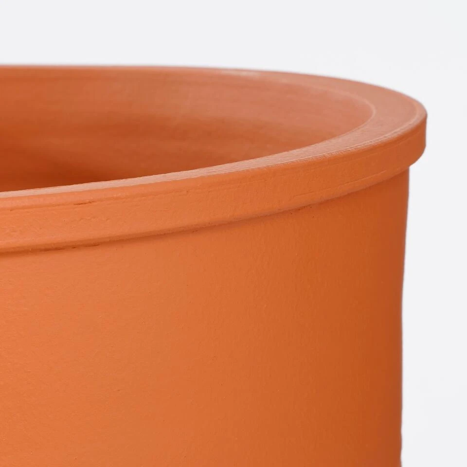 Bloempot Momo van Mica Decorations heeft een aardse basis waar het design een industriële draai aan geeft. Met de verticale ribbels doet de vormgeving namelijk denken aan een blik. Erg modern! De terra kleur zorgt hierbij voor een warme uitstraling. De pot wordt gemaakt van terracotta klei in Portugal en helemaal met de hand afgewerkt. Hierdoor heeft elke pot zijn eigen, unieke uitstraling. De Momo bloempotten zijn verkrijgbaar in verschillende kleuren en maten. Dit terra kleurige model heeft een afmeting van H29 x Ø32 cm.