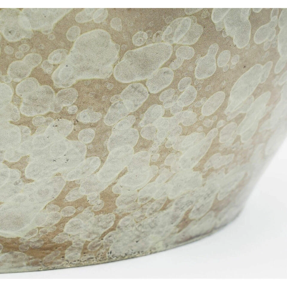 Plantenpot/bloempot van terracotta in de kleur groen shadow met diameter 19 cm en hoogte 17 cm. Stijlvolle bloempotten voor binnen gebruik met een metallic shadow finish. Serie: Oliver. Deze terracotta pot is volledig met de hand gemaakt door traditionele Portugese pottenbakkers. Door de aandacht voor elke pot is elk stuk uniek. Bovendien geeft de bijzondere afwerking het een metaalachtig uiterlijk.