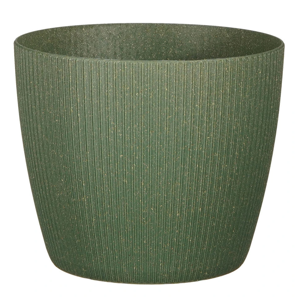 Plantenpot/bloempot van gerecycled kunststof in de kleur donkergroen met een ribbels patroon. Diameter 22 cm en hoogte 22 cm. Stijlvolle bloempotten voor binnen en buiten gebruik. Serie: Copa. De stijlvolle pot met een prachtige finish aan de buitenzijde.