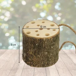 Dit Orange85 insectenhotel is een leuke toevoeging aan de tuin. Dit accessoire brengt sfeer in de tuin. Daarnaast is het een veilige plek voor insecten. Insecten zullen zich nestelen in de boomstam. De verschillende insecten die erop af komen zorgen voor bestuiving van flora in de tuin. Het insectenhotel is voorzien van een touw waardoor hij gemakkelijk is op te hangen aan een spijker of schutting.