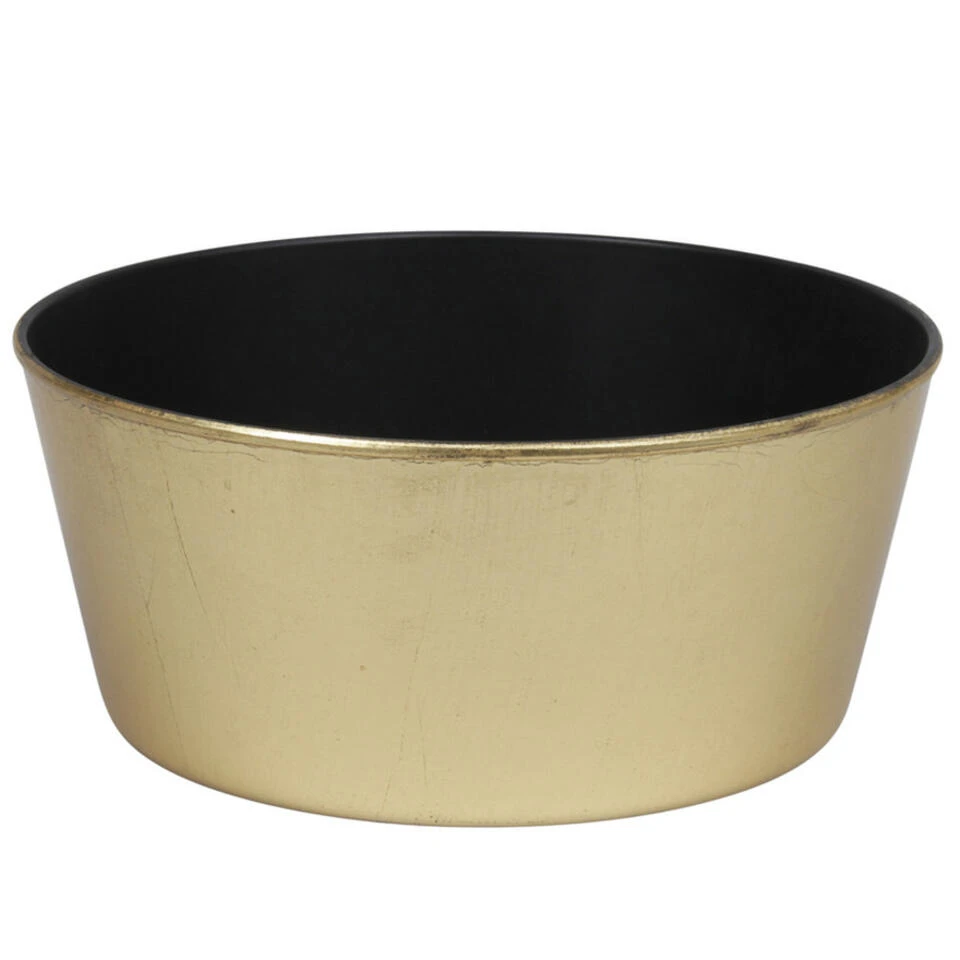Othmar Decorations Plantenpot, goudkleurig. Deze is rond en heeft een formaat van ca. D24 cm x H10 cm. Materiaal: plastic/kunststof. Deze plantenpot/ bloembak is geschikt voor binnengebruik.