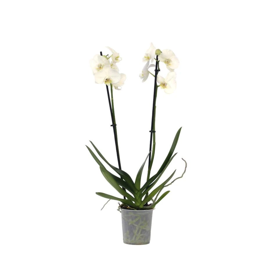 De Phalaenopsis, ook wel bekend als maanorchidee of vlinderorchidee, komt oorspronkelijk uit de tropische regenwouden van Zuidoost Azië, de Filipijnen en Australië, waar zij voornamelijk in bomen groeit. De vlinderorchidee is ontzettend populair en het is niet moeilijk te begrijpen waarom. De orchidee geeft niet alleen elegante bloemen in mooie kleuren, ze is ook nog eens makkelijk te verzorgen en heeft een lange bloeiduur die tot wel drie maanden kan duren. Ook is de Phalaenopsis een van de weinige soorten die meerdere bloemtakken per jaar geeft. De Phalaenopsis Wit geeft mooie witte bloemen op 2 bloemtakken.