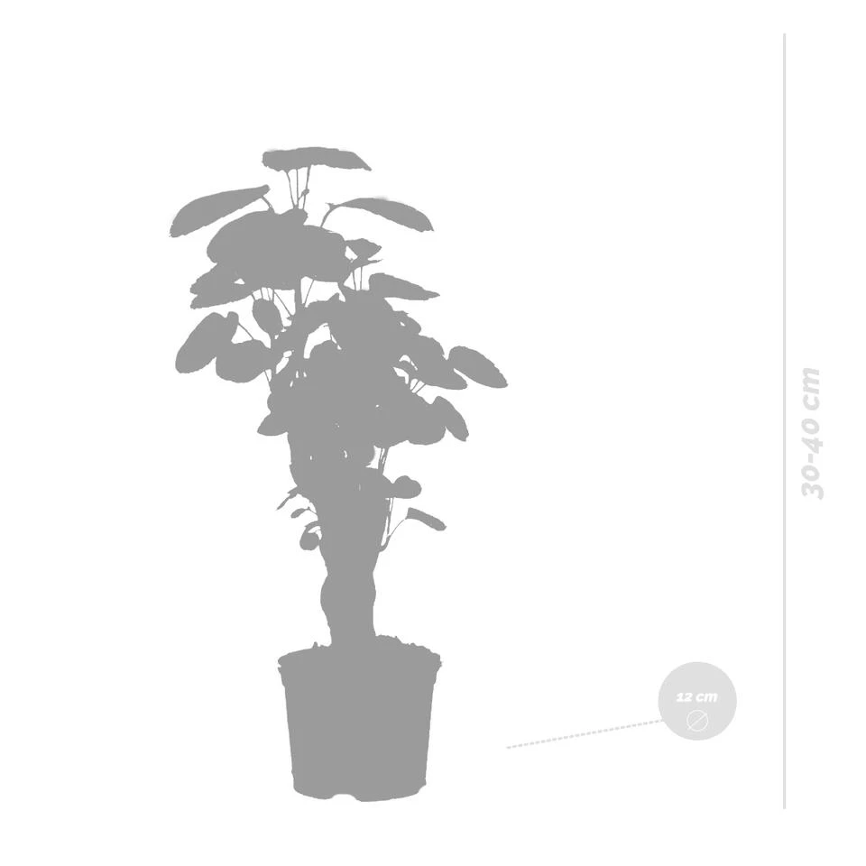 Hier zie je de Polyscias scutellaria βFabianβ. Een klein boompje voor bij jou in huis! Oorspronkelijk groeit de Polyscias op eilanden in de Pacifische oceaan. In het wild worden deze bomen zoβn 2 – 6 meter hoog en zorgen ze met hun grote bladeren voor veel schaduw. Polyscias betekent dan ook βveel schaduwβ in het Grieks. βFabianβ heeft echter een handiger formaat, zodat je binnenshuis ook van deze prachtboom kunt genieten. Deze compacte kamerplant heeft een dikke houten stam. Dit kleine, vertakkende boompje krijgt bladeren over de volledige lengte van zijn takken. Dit zorgt voor een fijne mix aan natuurlijke kleuren. De donkergroene bladeren hebben een leerachtig karakter en krullen enigszins naar buiten. Aangezien dit dwergboompje mooi recht en compact blijft, heb je zo een plekje gevonden in huis. Deze stoere blikvanger zorgt gegarandeerd voor sfeer in ieder interieur.
